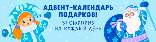 Считайте дни до 31 декабря вместе с нами. Каждую неделю открываем окошки нашего адвент-календаря, а внутри — праздничное настроение, подарки, промокоды и полезные материалы для занятий с детьми. Новый день — новый сюрприз. Соберите их все!