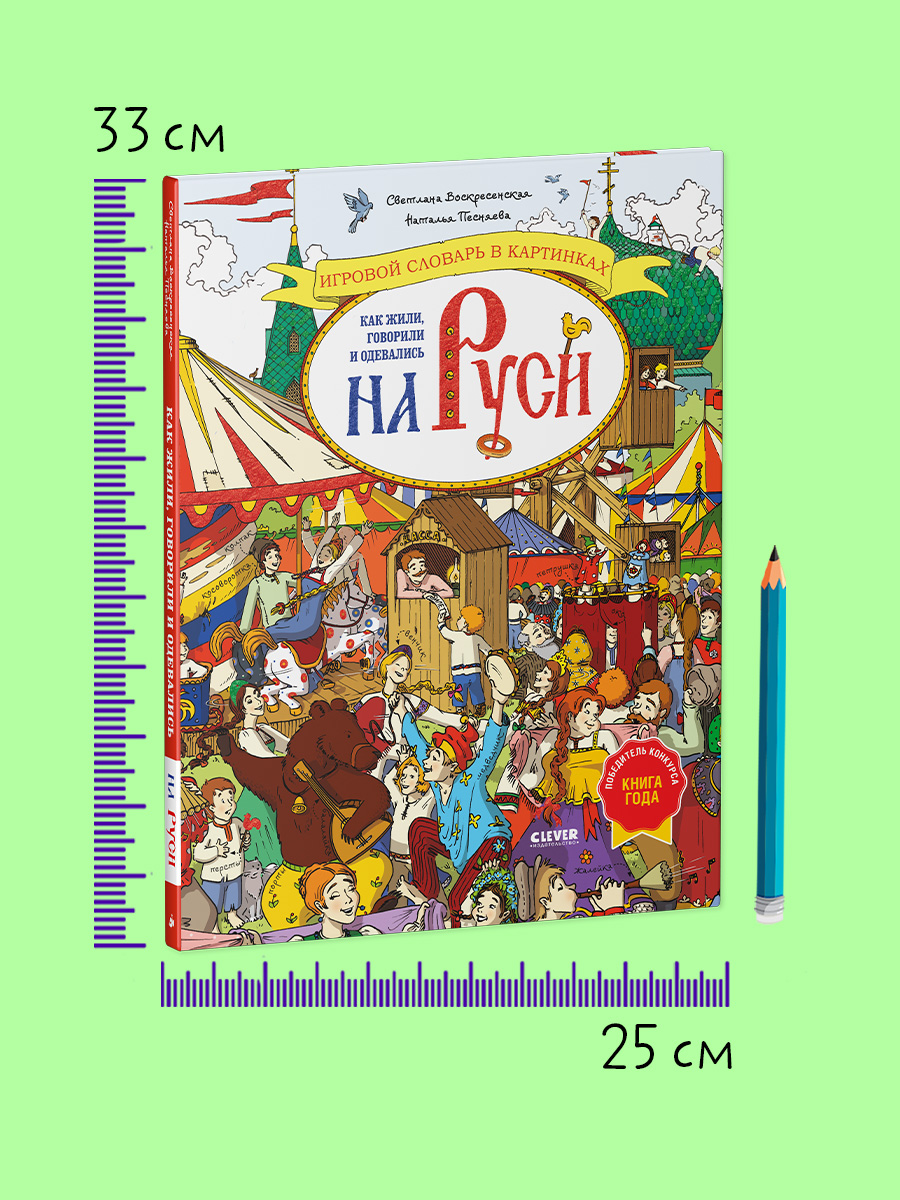 «Как жили, говорили и одевались на Руси. Игровой словарь в картинках» — отличная энциклопедия для детей, которая в увлекательной форме объяснит непонятные в книгах слова. Благодаря большому формату картинки в этой книге удобно и интересно рассматривать. Это увлекательная энциклопедия для детей 7 лет и старше. Это может быть как энциклопедия для мальчиков, так и энциклопедия для девочек, не первая энциклопедия для малыша, но одна из первых книг школьника. Если вы ищете подарки на Новый год детям, которые были бы полезными и увлекательными, книги для детей 8 лет и новогодние книги для детей, эта детская энциклопедия — то, что вам нужно.