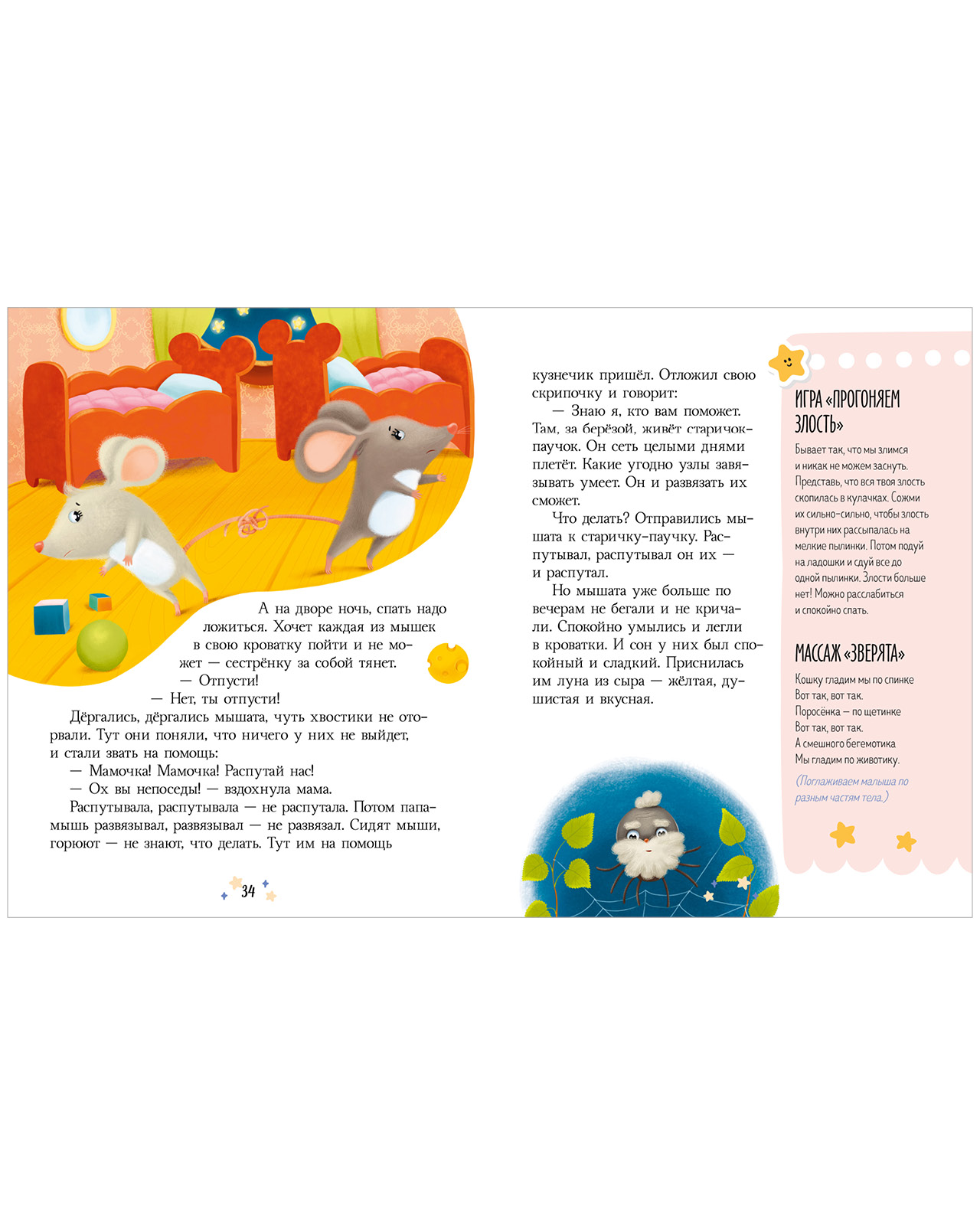 Главы со сказками дополняют простые тактильные игры и упражнения. Сделайте малышу массаж, изображая капающий дождик, или порисуйте на ладошках, нежно расслабляя ребенка и помогая ему избавляться от негативных мыслей и переключаться с бодрствования на сон.