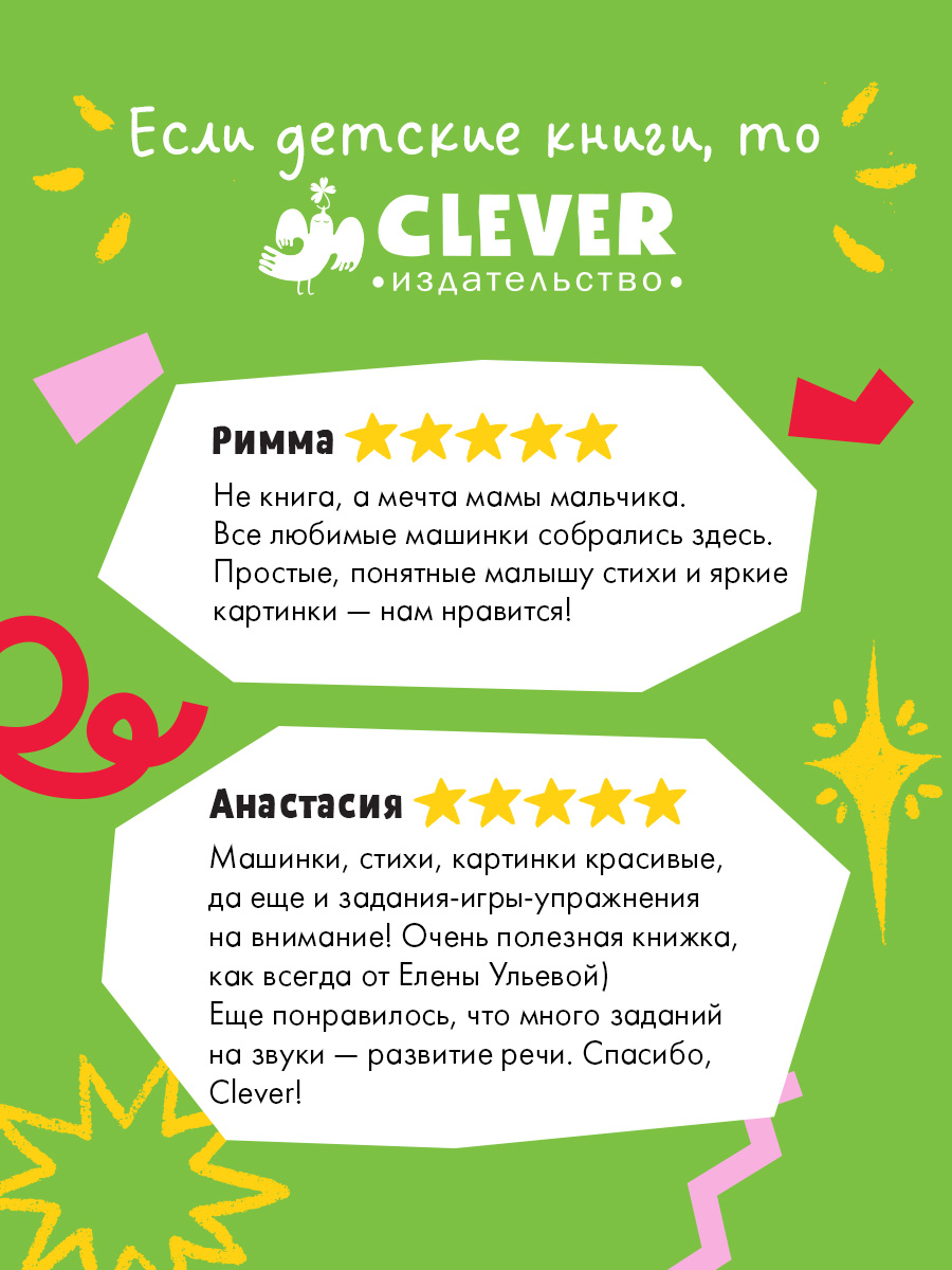Читая сказки Clever книги о машинках, малыш сможет легко запомнить простые ритмичные стихи книжки, узнать все самое важное и полезное про транспорт, подумать о безопасном поведении героев сказки для малышей на улице.