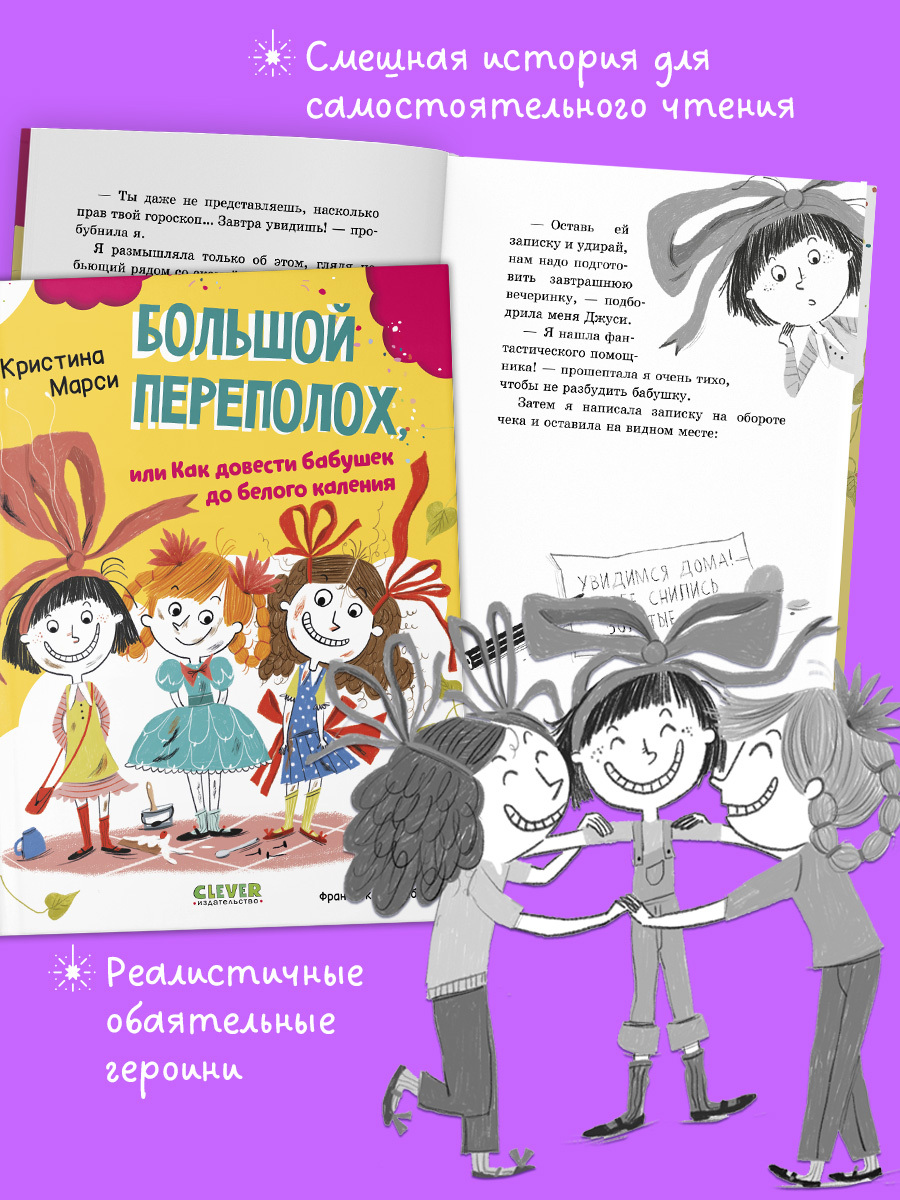 Книга «Большой переполох, или Как довести бабушек до белого каления», которую представляет издательство Clever, — отличный новогодний подарок для детей, если ищете Clever книги для детей 6-8 лет про этикет, увлекательные и смешные детские книги и книги для детей про летние приключения.