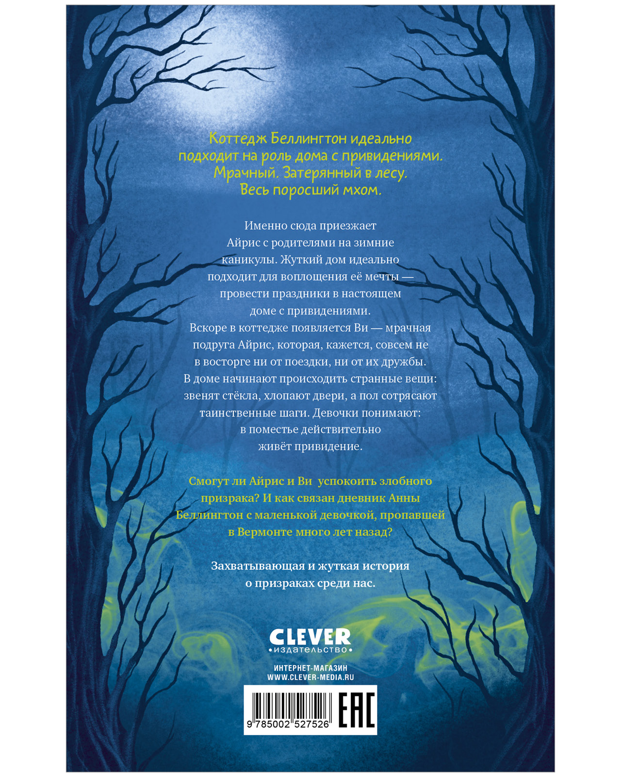 Коттедж Беллингтон идеально подходит на роль дома с привидениями. Мрачный. Затерянный в лесу. Весь поросший мхом. Именно сюда приезжает Айрис с родителями на зимние каникулы. Жуткий дом идеально подходит для воплощения ее мечты — провести праздники в настоящем доме с привидениями