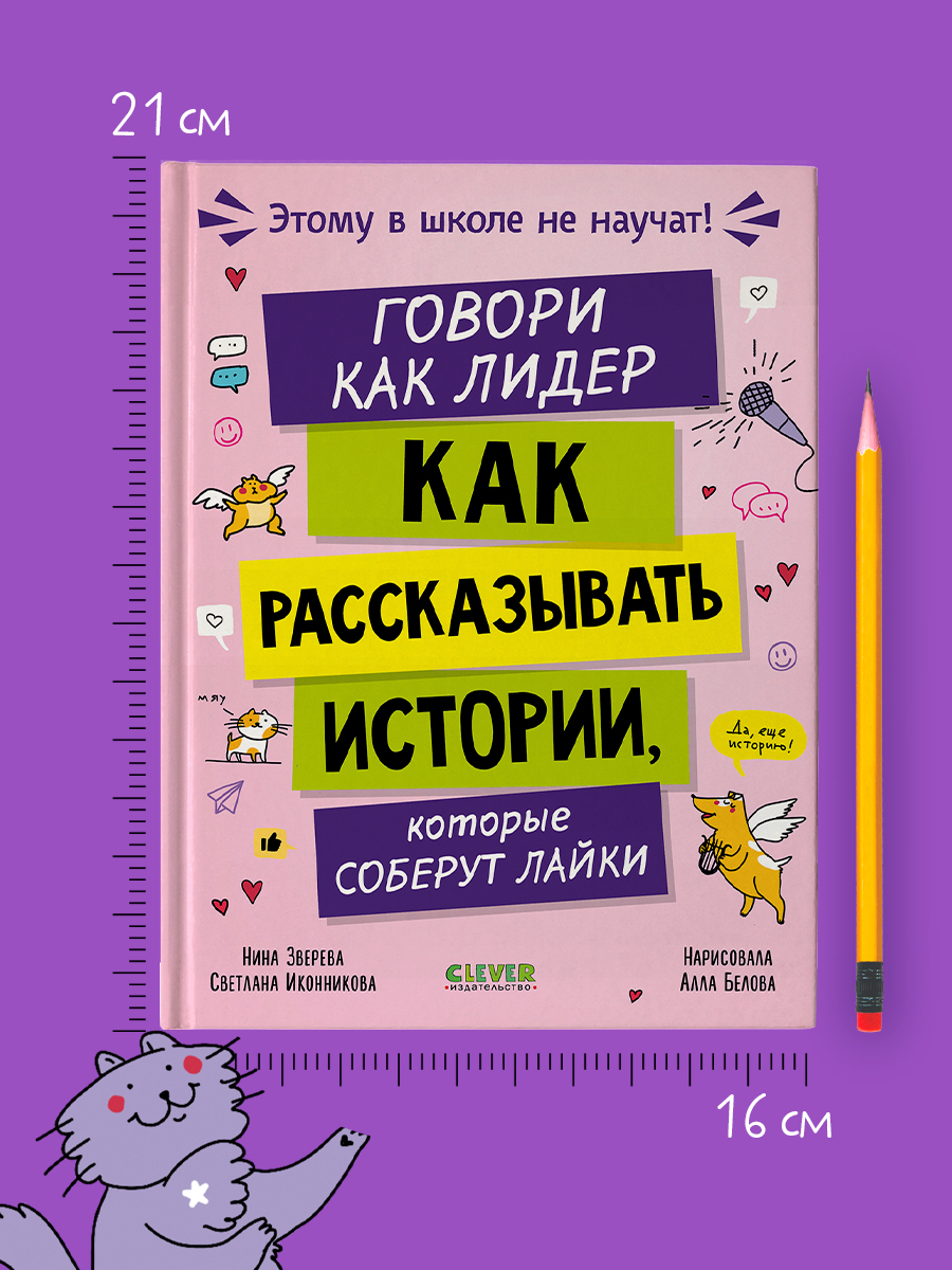 «Говори как лидер. Как рассказывать истории, которые соберут лайки» — книга-тренинг, книга-учитель, книга-советчик, которую выпустило издательство Clever. Ее авторы — известные коучи и журналисты Нина Зверева и Светлана Иконникова расскажут, как придумывать истории, как рассказывать про себя, а как про других, чтобы никого не обидеть, а еще — как выступать со сцены не стесняясь и отвечать у доски не боясь.