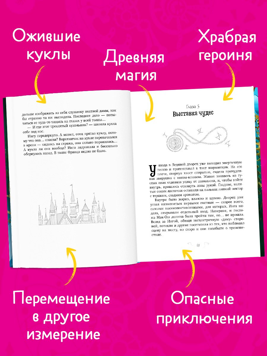 Инге, дочери королевского кукольника, запрещено покидать дворец, но ей так хочется попасть на Выставку чудес! Шансом Инги становится загадочное происшествие: пытаясь сбежать, девочка выпускает из тайника отца ожившую куклу. Почему эта кукла проснулась? Следуя за беглянкой, Инга сталкивается с наследным принцем, вместе они пробираются на выставку. Друзей ждут невероятные, опасные приключения: им предстоит выбраться из другого измерения, справиться со злодеем, разгадать тайны древней магии и спасти королевство…