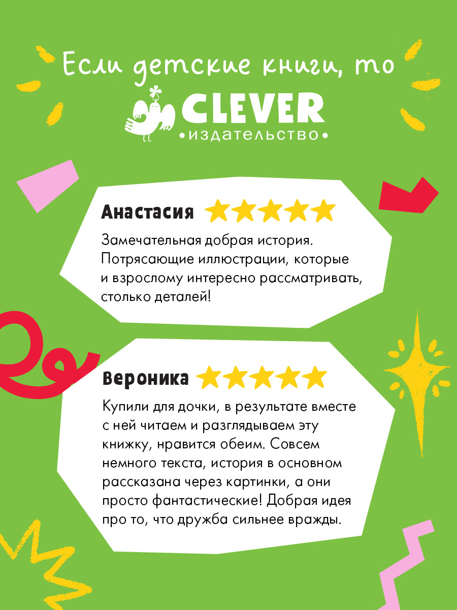 У этой Clever книги — потрясающие детальные иллюстрации, которые рассказывают историю вместе с текстом. А благодаря большому формату этой книги для детей картинки можно рассмотреть в деталях. Это отличная книжка для малышей 3-5 лет.
