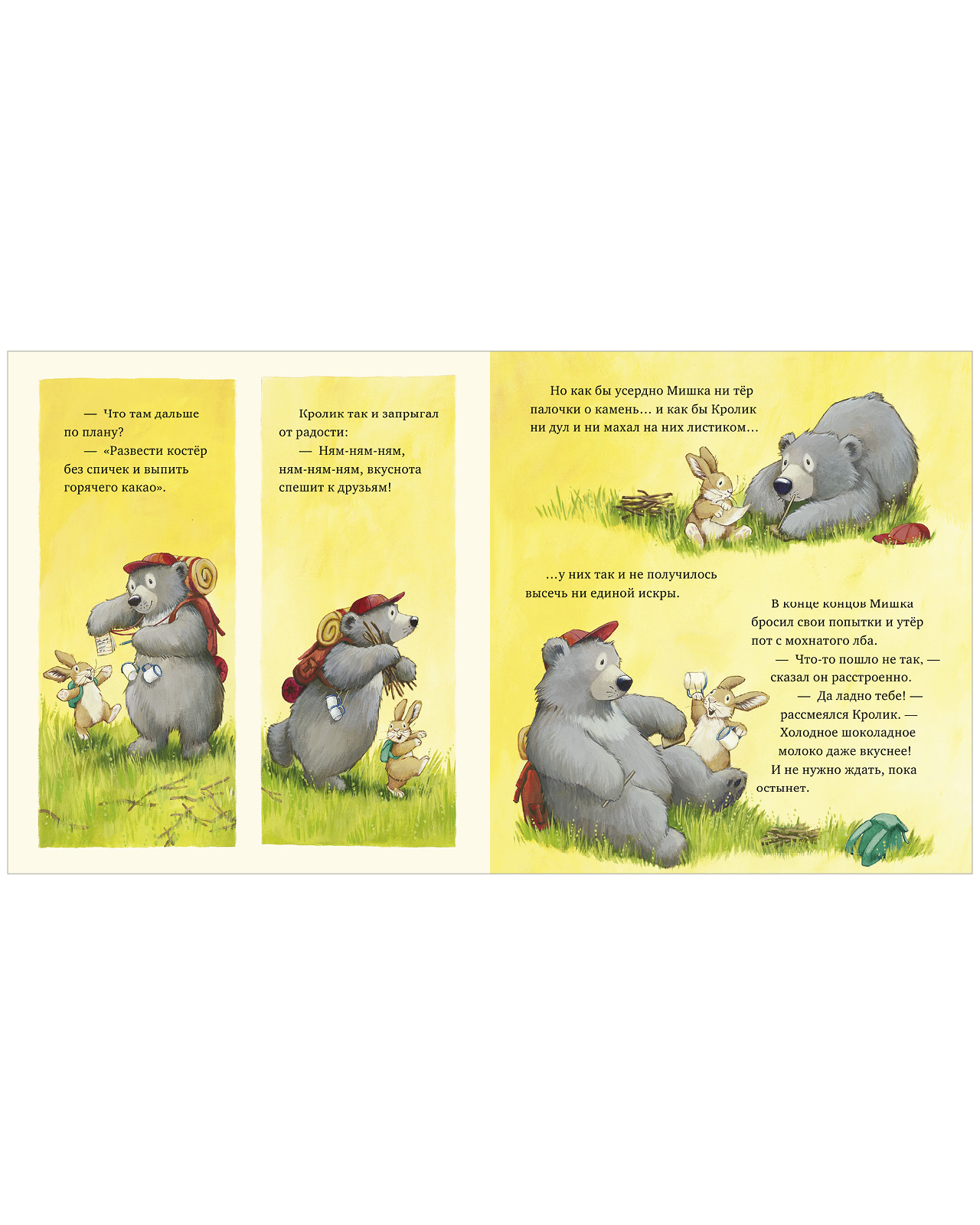 Кролик и Мишка решили отправиться в поход, чтобы посмотреть на самый красивый закат. У них даже есть ИДЕАЛЬНЫЙ ПЛАН — разве может что-то пойти не так? Правда, карта почему-то водит друзей кругами, костер никак не хочет загораться, а палатка — стоять ровно. Неужели поход обернется полным провалом? К счастью, Кролик знает, что делать!