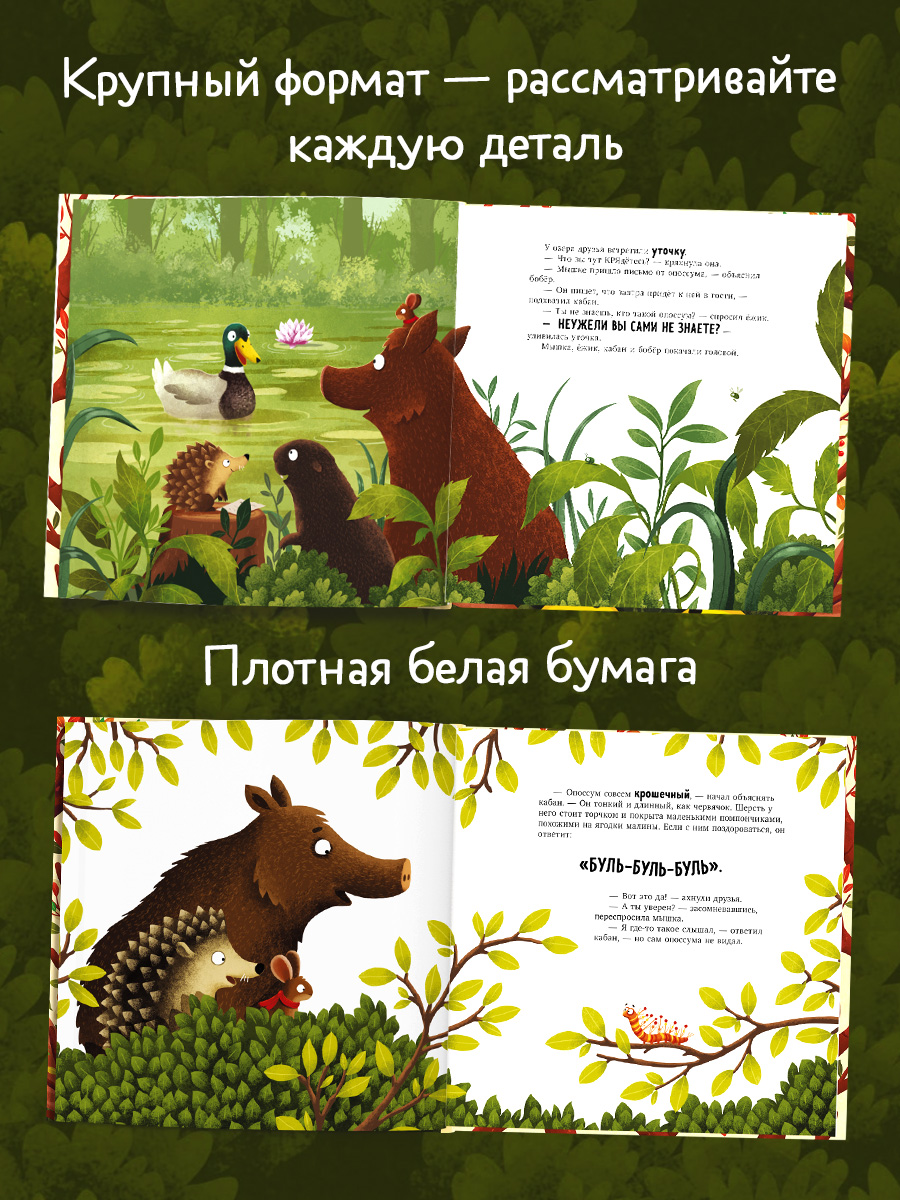 «Кто такой опоссум?» — веселая история, которая учит меньше доверять слухам, не бояться нового и находить друзей. Благодаря большому формату вы сможете рассмотреть каждую деталь на красочных страницах!