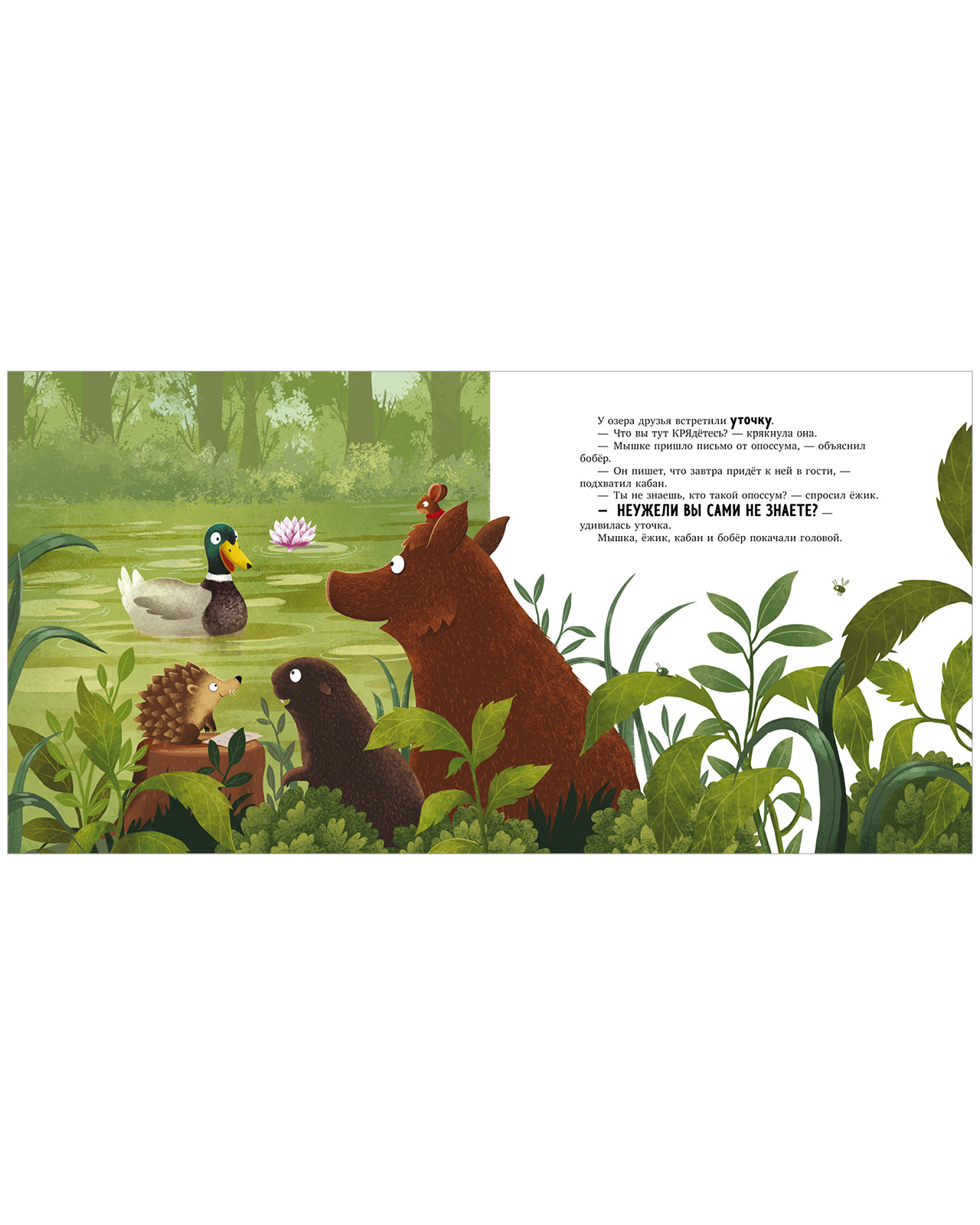 К счастью, ей на помощь приходят друзья, готовые поделиться самыми «точными» сведениями об опоссумах. Оказывается, эти невероятные животные обитают НА ДНЕ ОЗЕРА, едят КАМНИ и летают… ЗАДОМ НАПЕРЕД! Что же делать мышке? Получится ли подружиться с таким невероятным зверем?