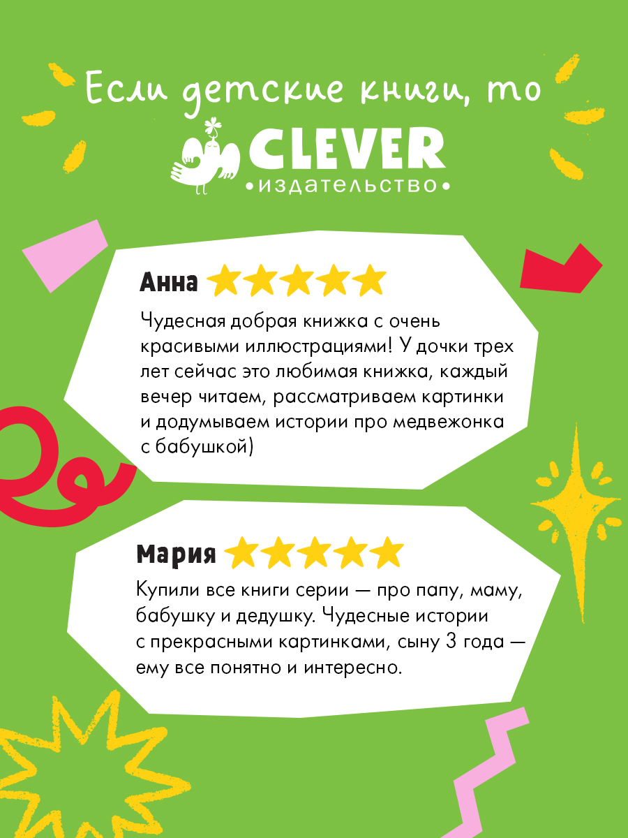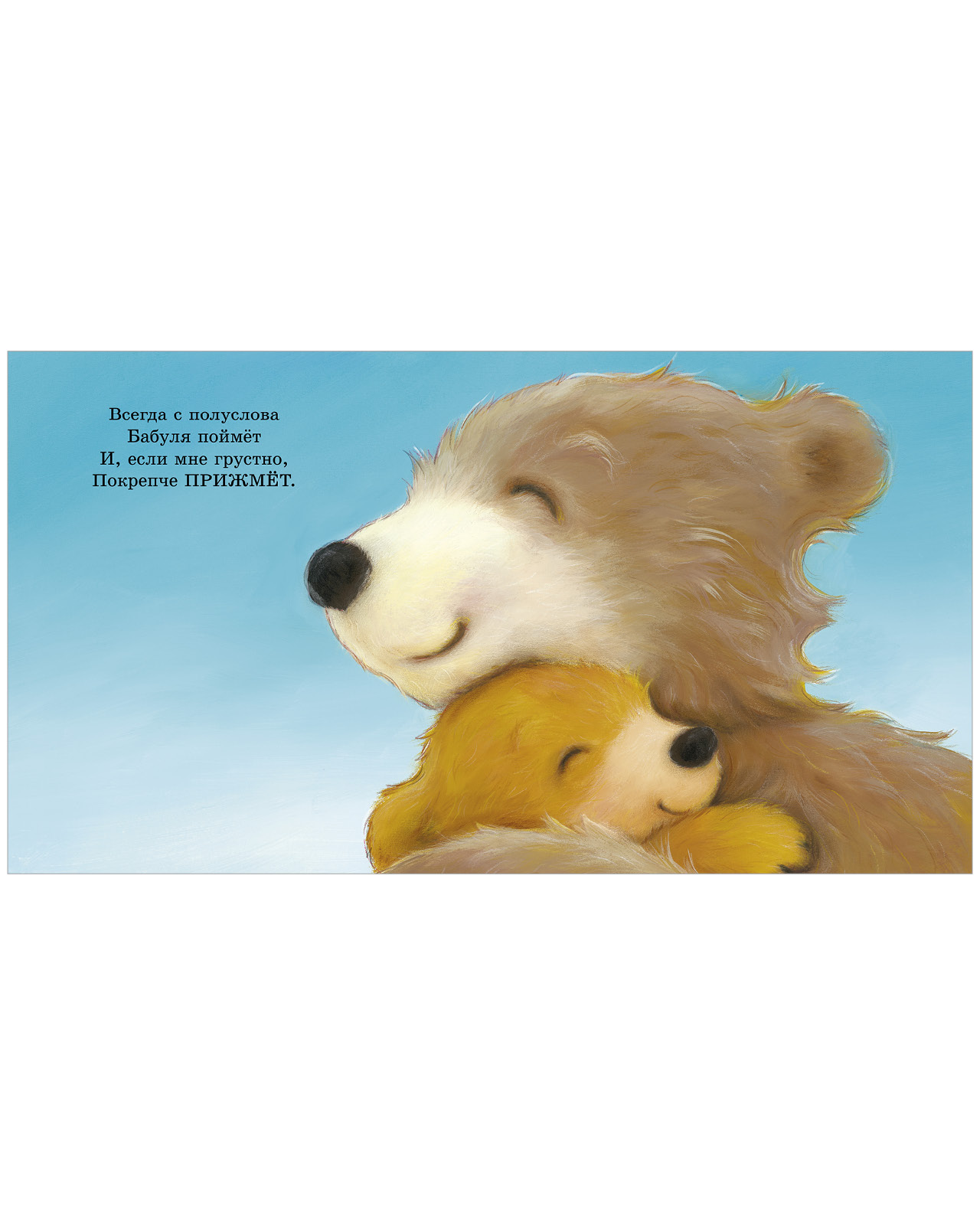 Медвежонку некогда скучать, если рядом бабушка! Вместе они гуляют по лесу, катаются с горки, любуются облаками и сочиняют сказки. А если медвежонок вдруг загрустит, бабушка обязательно его утешит и обнимет крепко-крепко.