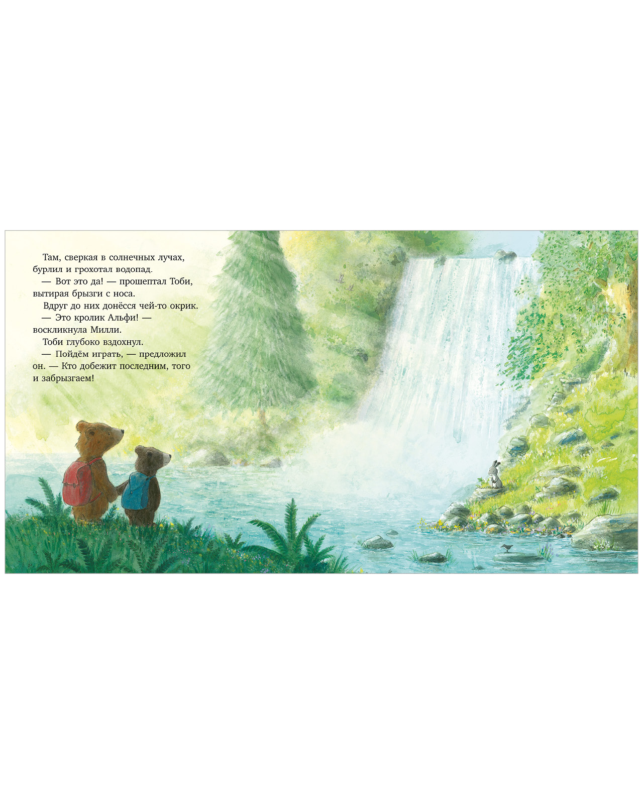 МЕДВЕЖОНОК БОИТСЯ ИДТИ С ДРУЗЬЯМИ К ВОДОПАДУ. Ведь он такой большой и громкий, вдруг затянет! Что же, мишке теперь пропустить всё веселье из-за страха? Хорошо, что у него есть сестрёнка Милли, которая точно знает, куда спрятать тревоги.