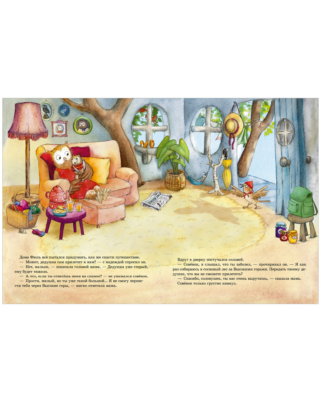 Совенок Фюль мечтает поскорее увидеть любимого дедушку, который живёт далеко-далеко, за Высокими горами! Но вот беда: перед самым путешествием малыш ушиб крылышко, так что встречу приходится отложить. К счастью, мудрый дедушка нашел способ быть рядом, несмотря на любые расстояния.