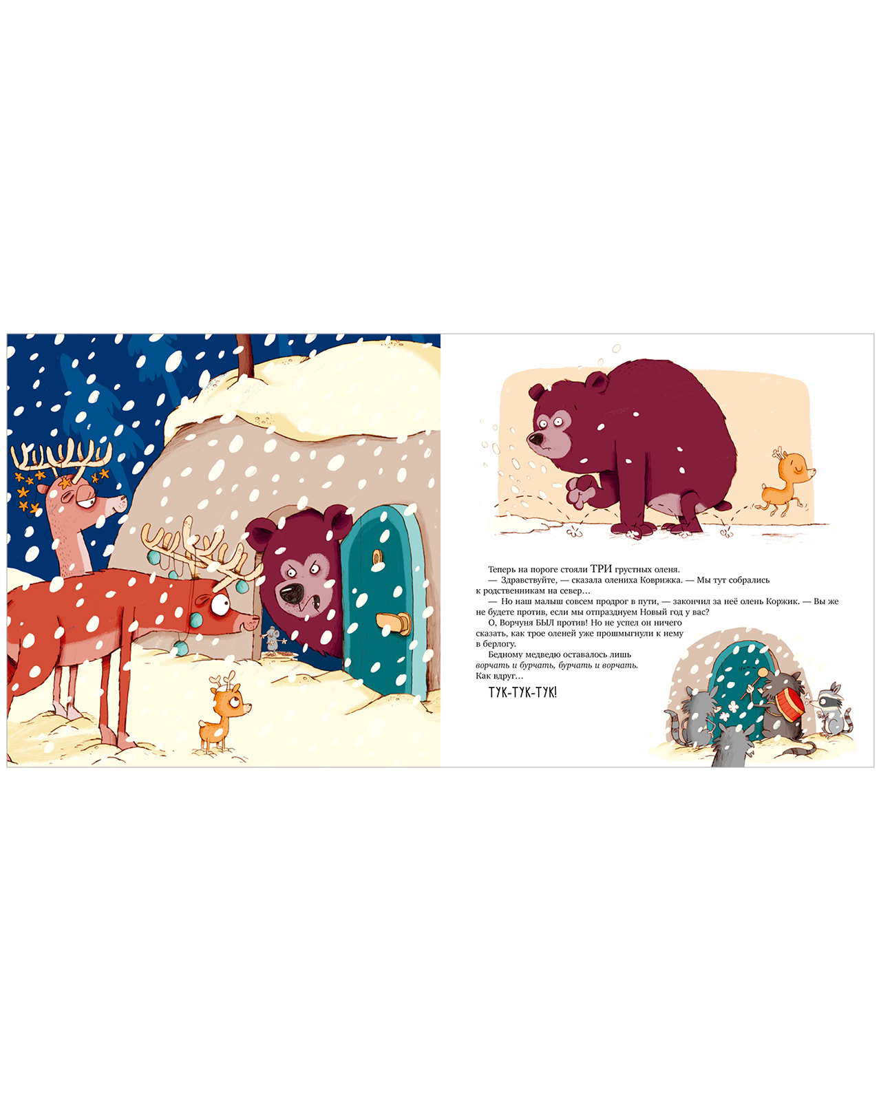 «Ворчливый медведь и Новый год» — добрая и смешная книжка для малышей, история с праздничным настроением о дружбе, уважении и приятных сюрпризах.