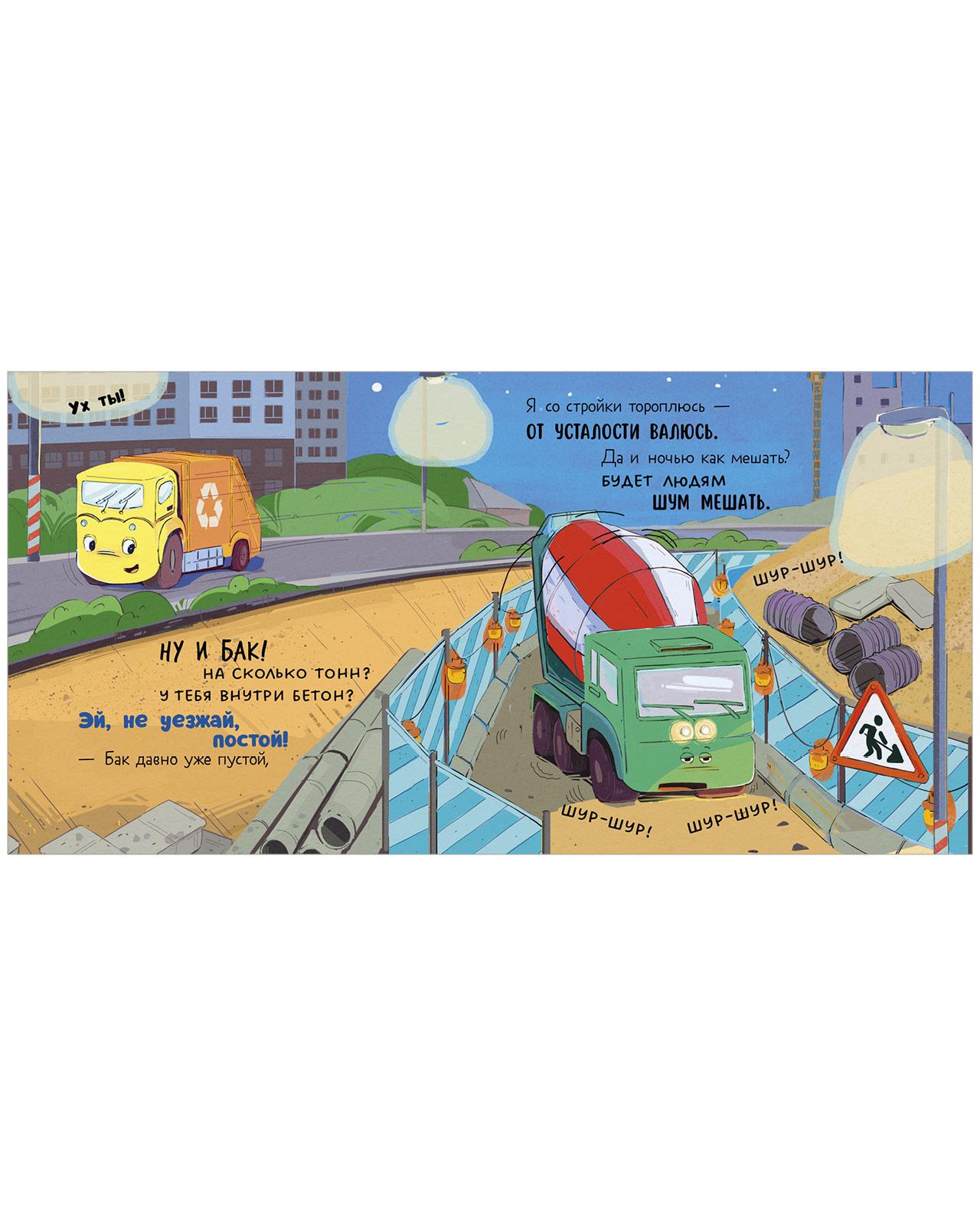 Как и всем детям, малышу мусоровозу очень не хочется ложиться спать. Он отчаянно ищет, с кем бы покататься по ночным улицам. Но все машины устали за день и спешат на стоянку или в депо. Как же быть мусоровозу? Может, желтая луна подскажет?