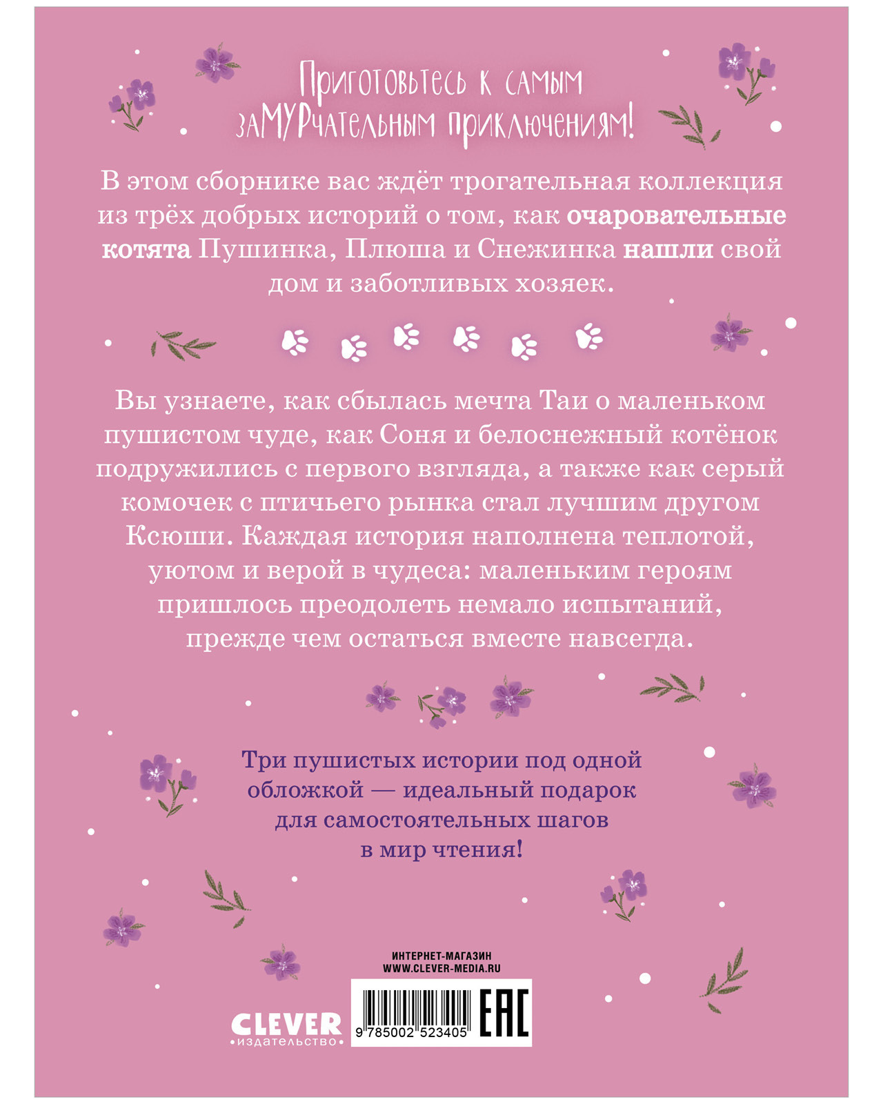 Вы узнаете, как сбылась мечта Таи о маленьком пушистом чуде, как Соня и белоснежный котёнок подружились с первого взгляда, а также как серый комочек с птичьего рынка стал лучшим другом Ксюши. Каждая история наполнена теплотой, уютом и верой в чудеса: маленьким героям пришлось преодолеть немало испытаний, прежде чем остаться вместе навсегда. Три пушистых истории под одной обложкой — идеальный подарок для самостоятельных шагов в мир чтения!