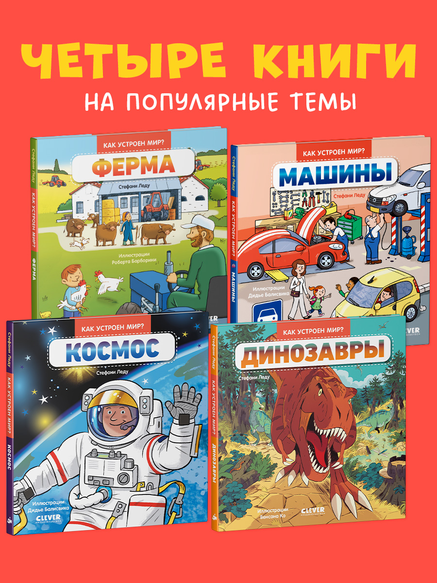 Комплект книг из четырех увлекательных энциклопедий поможет малышу познавать мир в доступной игровой форме. Маленьких читателей ждут интересные факты, детальные иллюстрации, задания, игры и ответы на множество вопросов. Это книги для детей из серии «Как устроен мир?», которую выпускает издательство Clever.