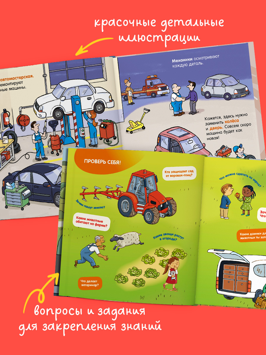 «Как устроен мир? Машины» для тех, кто ищет детские книги про автомобили. Ребенок узнает о разных видах машин: от обычных моделей до специальной техники и машин будущего.