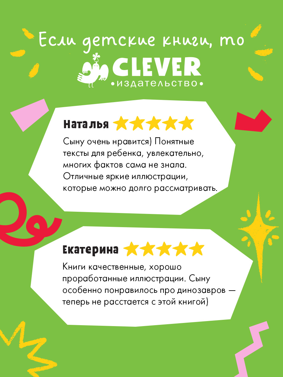 Эти Clever книги с красочными иллюстрациями и интересными заданиями — отличный выбор, если хотите найти для ребенка нескучные развивающие детские книги, детские книжки про космос и динозавров и детские книги для малышей с заданиями на тренировку памяти и внимания.