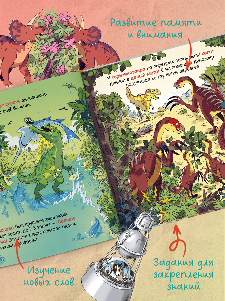 Книга «Динозавры» — увлекательный рассказ о жизни этих загадочных древних животных и о профессии палеонтолога. Маленькие читатели узнают, кто из динозавров был самым грозным, есть ли на земле потомки динозавров и многое другое.