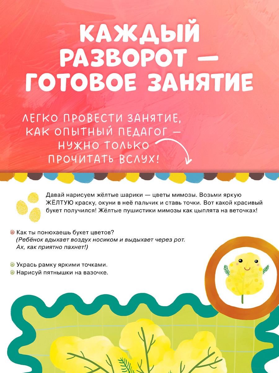 Урок построен так: малыш пальчиками "топает", проводит линии, дорисовывает что-то, а родители в это время задают ему вопросы или что-то рассказывают.