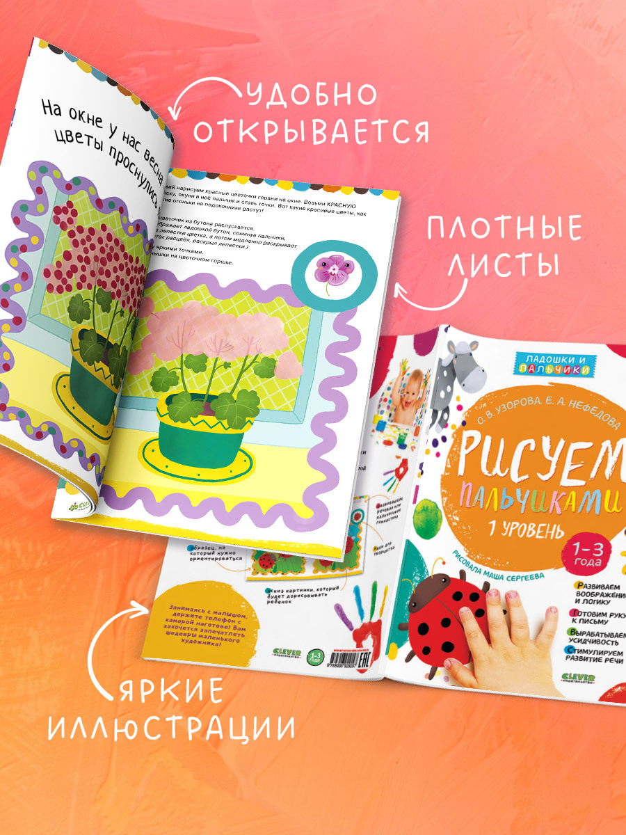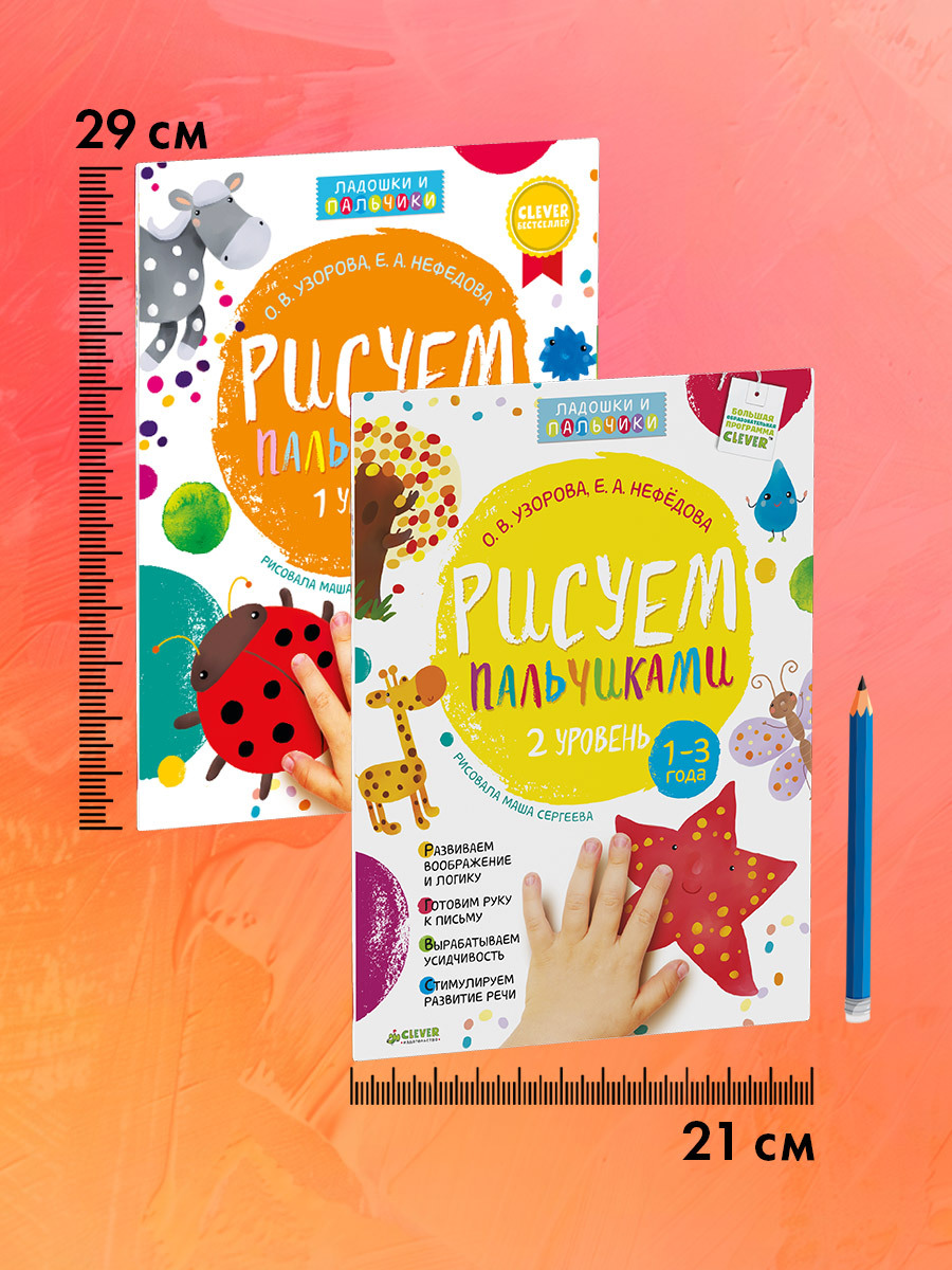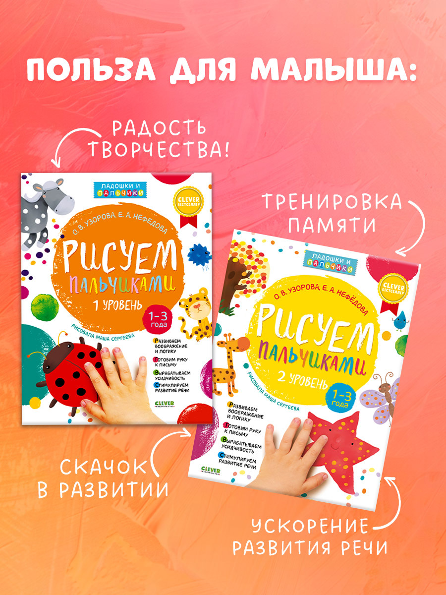 Комплект книг "Рисуем пальчиками 1 и 2 уровень. 1–3 года" превратит обучение рисованию малышей в комплексное развитие.С помощью раскраски, созданной по методике известных педагогов Ольги Узоровой и Елены Нефедовой, малыш поработает над развитием мелкой моторики, внимания, памяти и речи. А понадобятся для этого только пальчиковые краски!