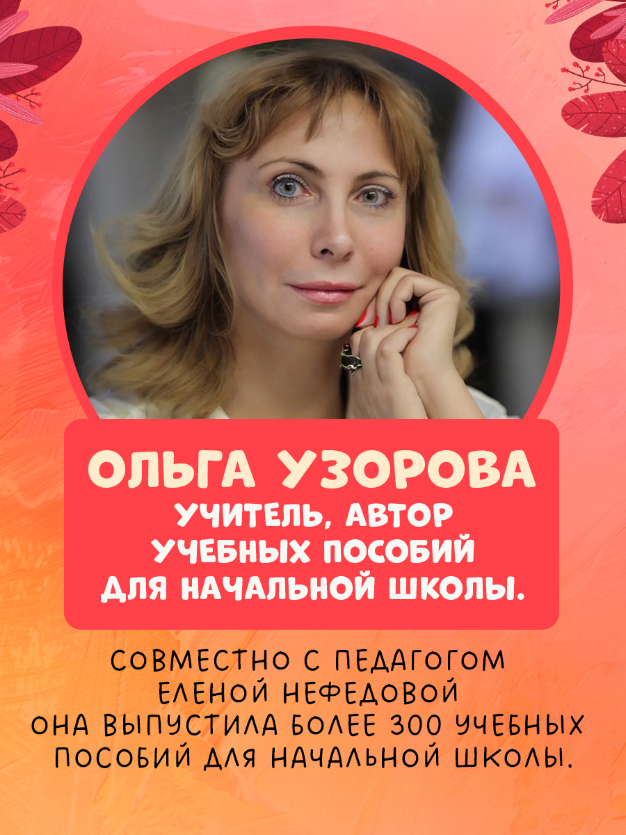 Ольга Узорова - учитель, автор учебных пособий для начальной школы. Разработанные ею дидактические материалы легли в основу различных развивающих книг. Совместно с педагогом Еленой Нефедовой она выпустила более 300 учебных пособий для начальной школы: по русскому языку, математике, рассказывающие об окружающем мире.