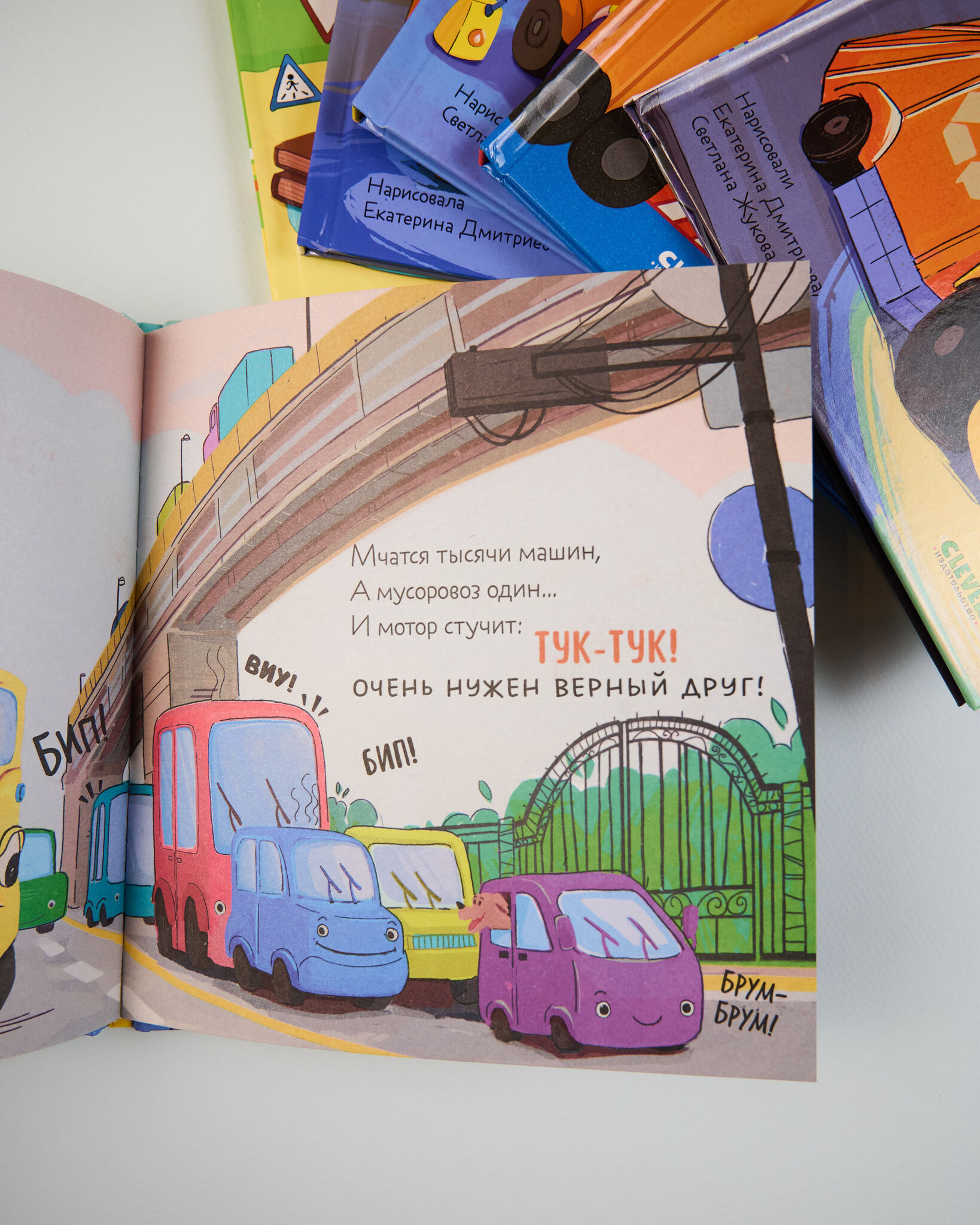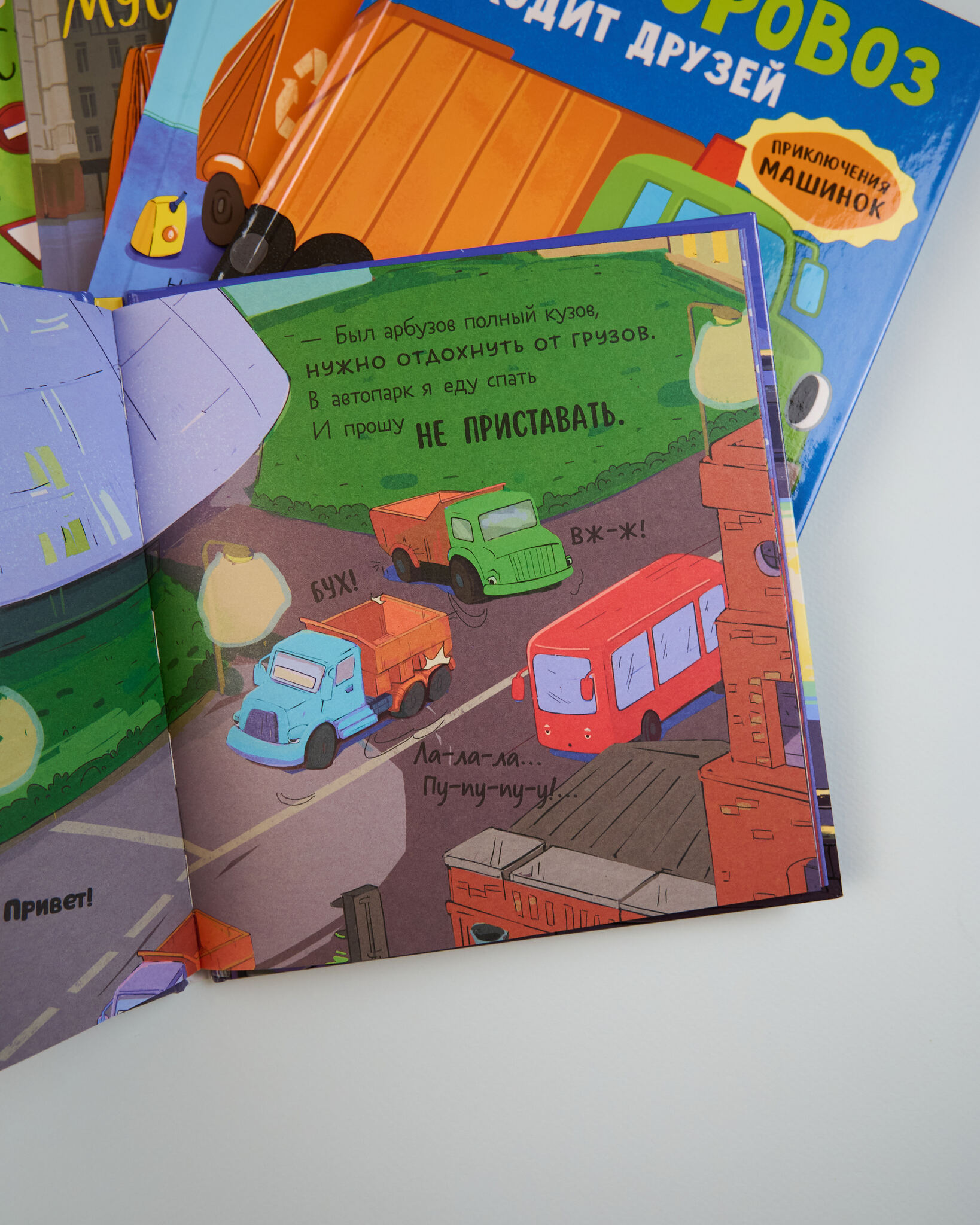Малыш мусоровоз очень хочет с кем-нибудь подружиться. Он встречает самые разные машины: водовоз, лесовоз, бензовоз, молоковоз… Вот только им совсем неинтересно дружить с малышом, да и своих забот полный кузов. Получится ли у мусоровоза найти друга?