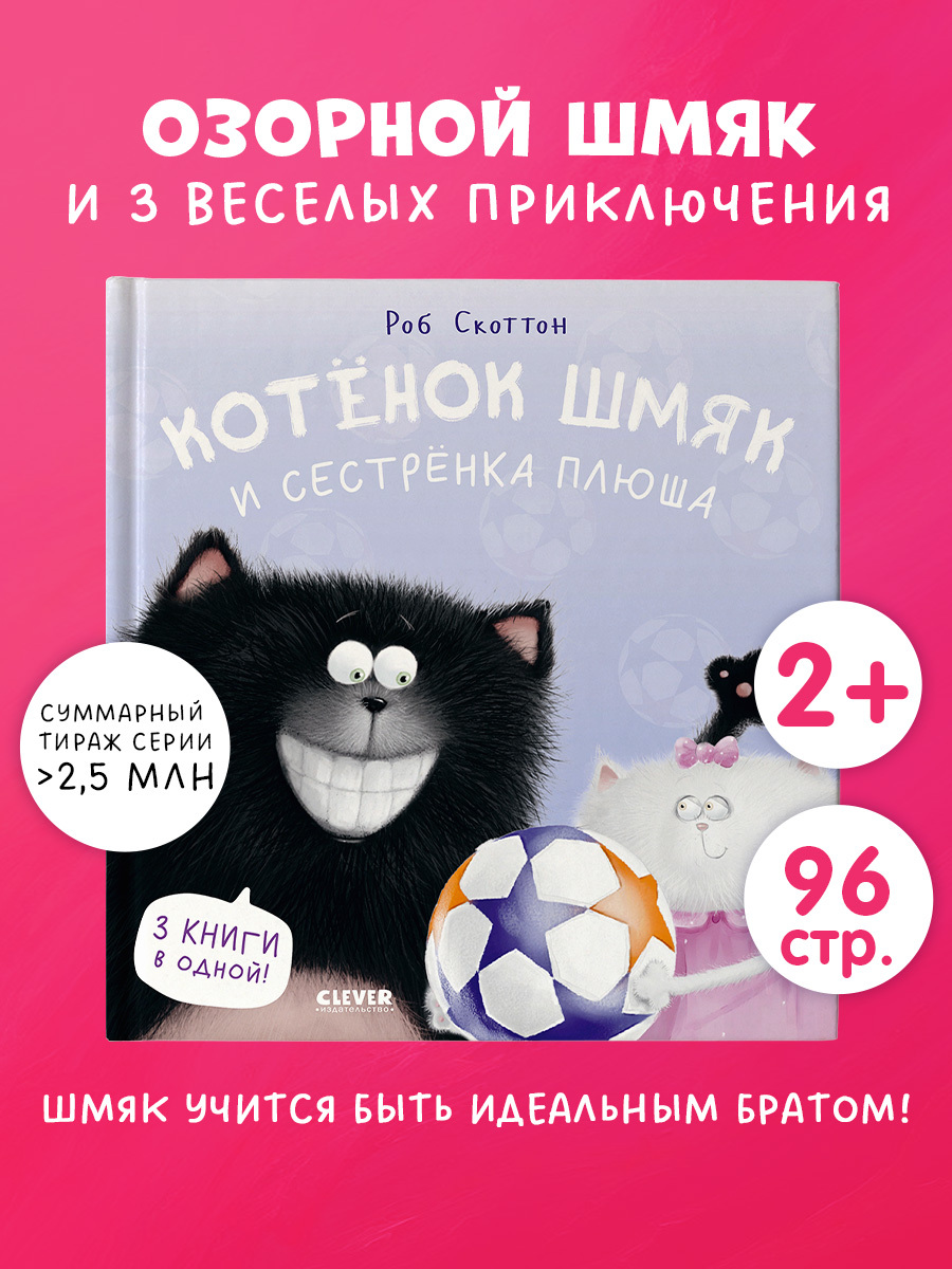Книжка про любимого героя малышей 3, 4, 5 лет — котенка Шмяка — это сказочная детская художественная литература, которая подойдет для чтения дома, в детском саду, а ребятам постарше — и для первого самостоятельного чтения. Ведь в книге крупный шрифт, понятный текст, лучшие приключения и много красивых картинок. Добрая сказка с “пушистыми” смешными иллюстрациями станет прекрасным подарком дочери и сыну, внуку и внучке, всем мальчикам и девочкам на день рождения и Новый год (НГ) или дополнением к праздничному набору или комплекту.