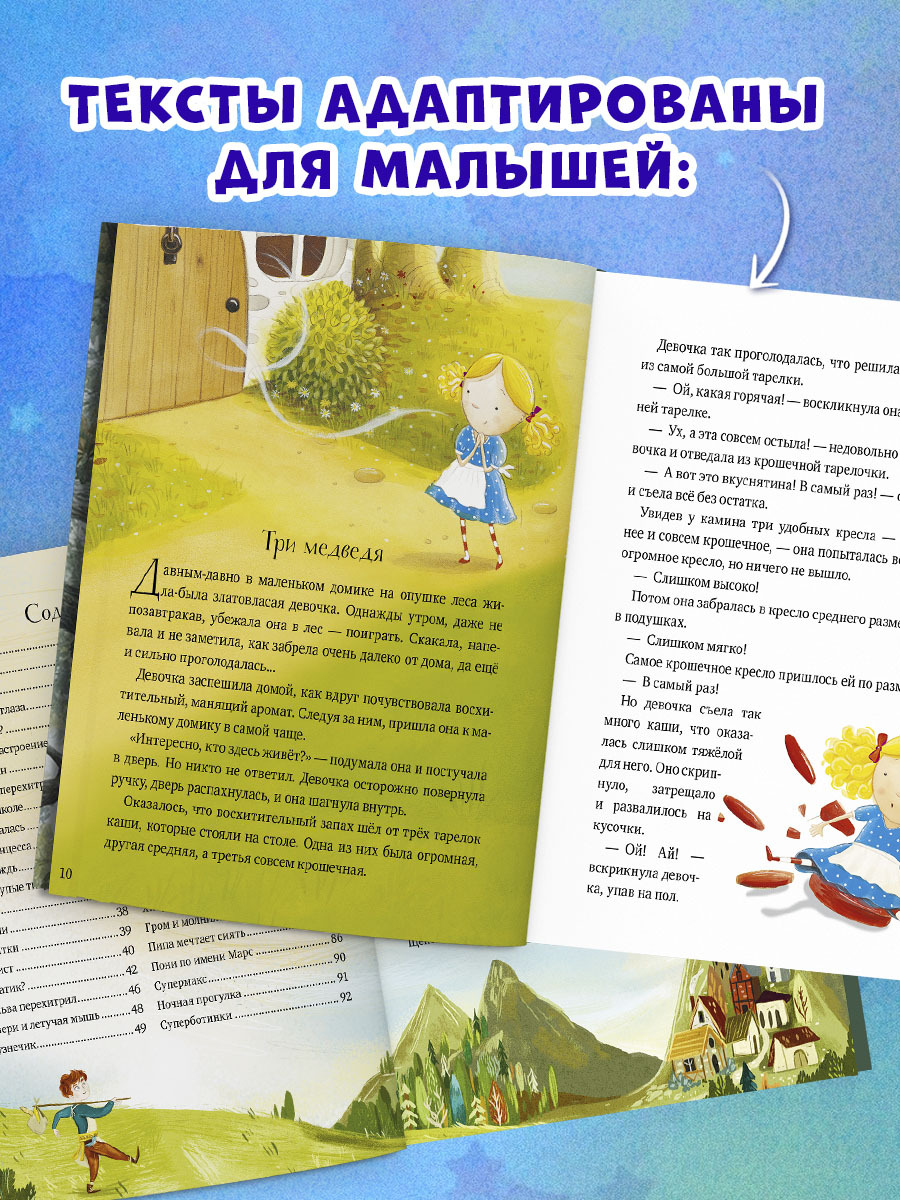 В сборник вошли такие известные сказки, как «Бременские музыканты», «Три медведя», «Свинопас», а также произведения современных авторов. Все тексты адаптированы специально для малышей, а на каждой странице ждут красочные иллюстрации, созданные целой командой художников. Книга идеально подходит для первого знакомства с сокровищами мировой литературы и уютного чтения перед сном.