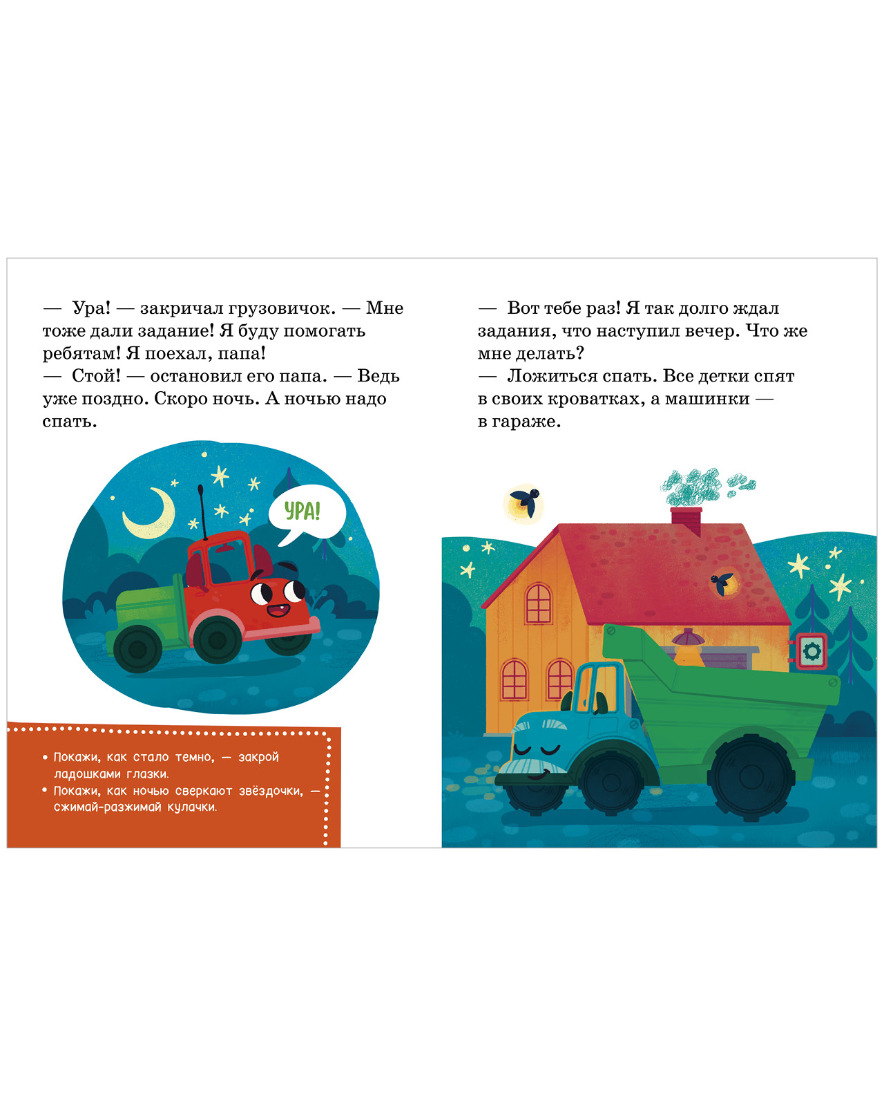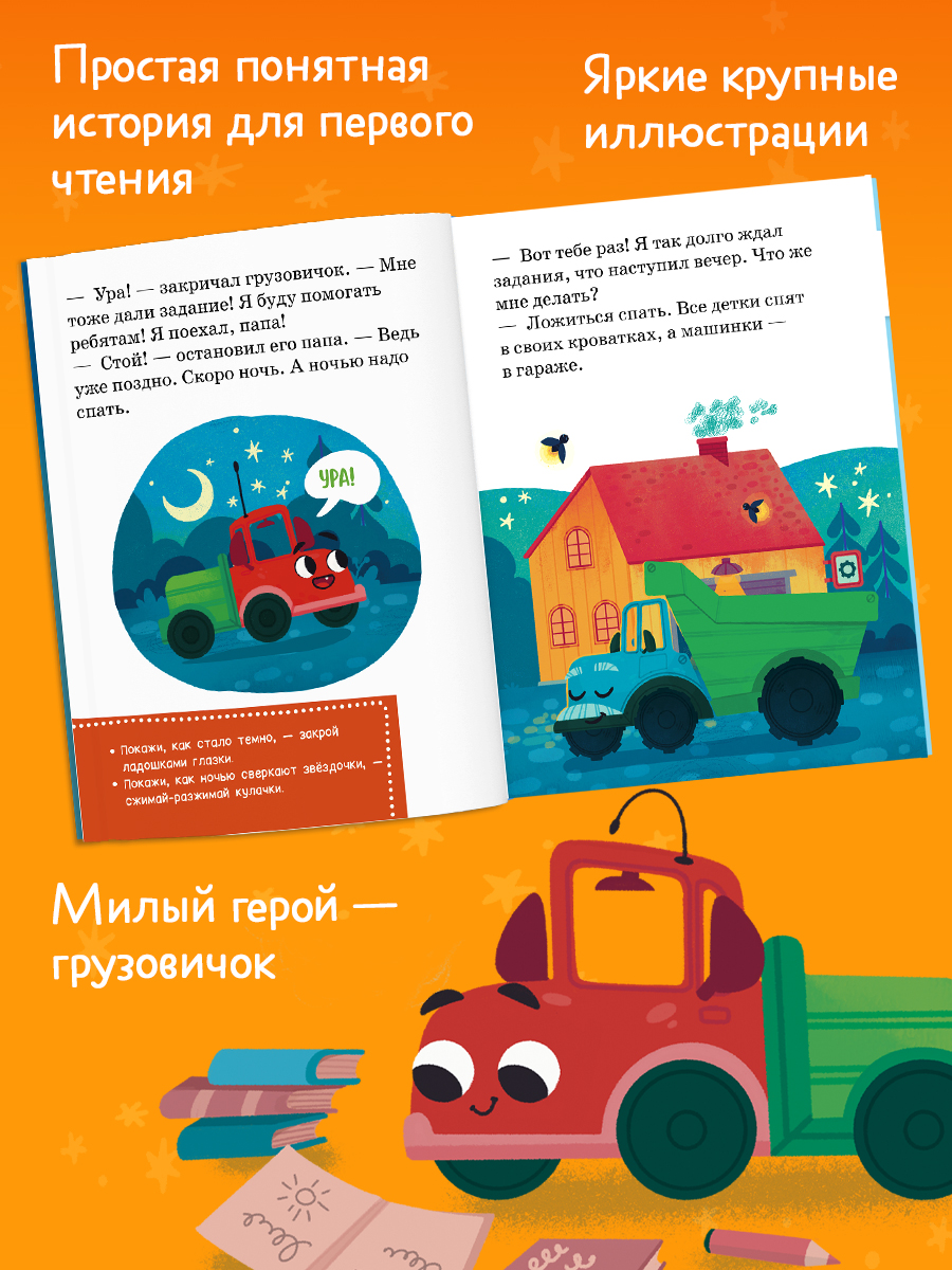 Читаем и играем с любимым героем! Маленький грузовичок уже ждет вас, чтобы вместе отправиться в приключения. Книга для малышей «Маленький грузовичок не хочет спать» с яркими иллюстрациями и заданиями на каждой странице подходит для первого чтения и раннего развития малыша. Кроме того, история книги для детей — это чудесный подарок на Новый год ребенку!