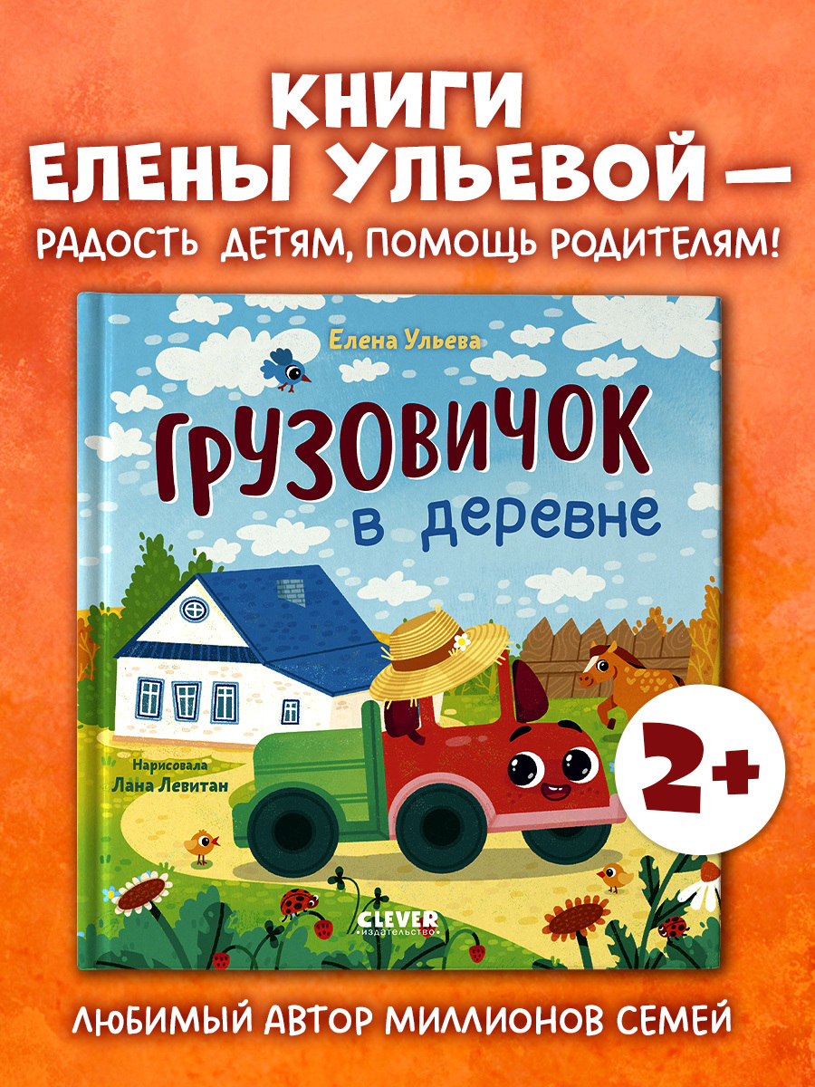 «Грузовичок в деревне» — добрая сказка Елены Ульевой про любимого героя малышей с яркими картинками и развивающими заданиями.