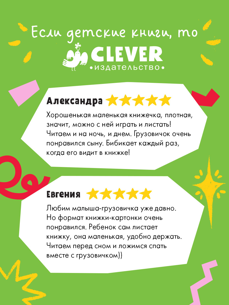 Добрая история книжки для малышей от года, яркой Clever книги, понравится мальчикам и девочкам, которые любят детские книги про транспорт, и родителям, которые ищут познавательные книги для детей, развивающие книжки для малышей 0–1, картонные книжки для детей 2 года или интересный подарок ребенку 2 года.