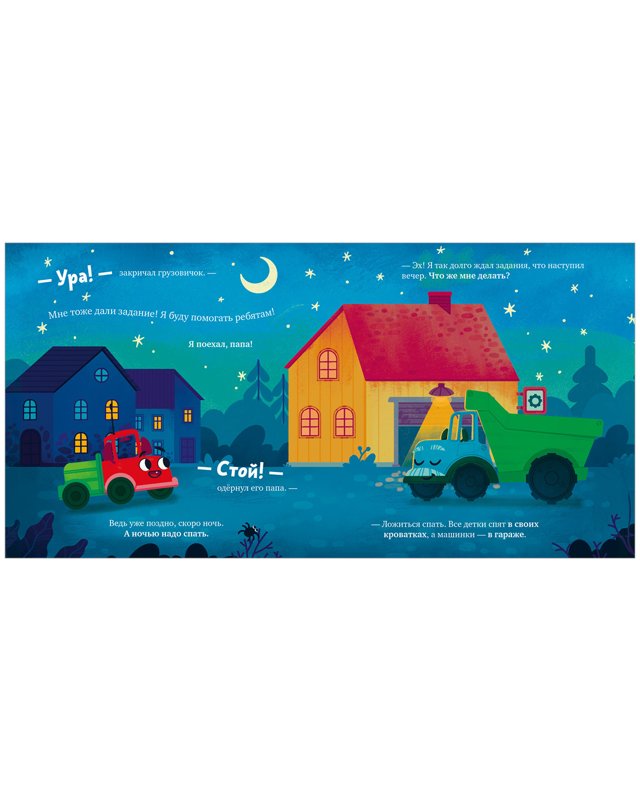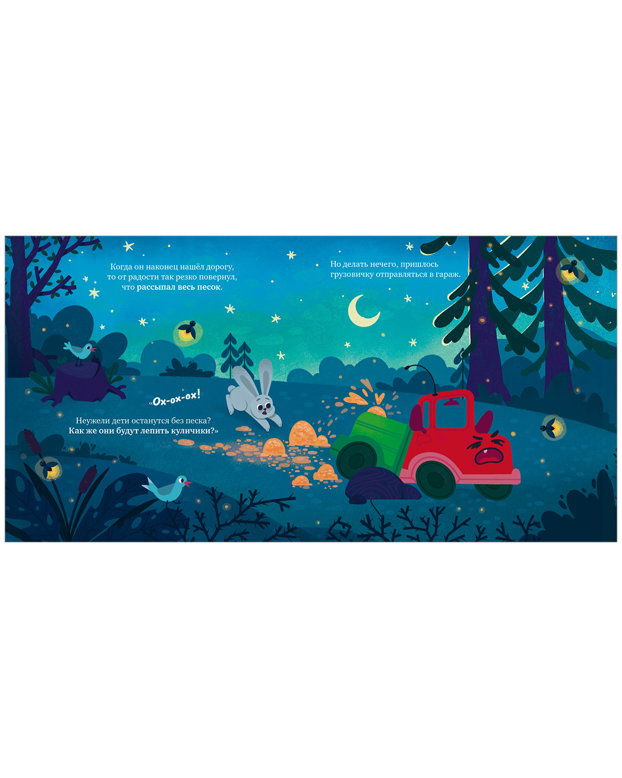 Что случилось с грузовичком на этот раз? Он очень хотел выполнять важные задания, как делали большие машины, он хотел показать, что он все может, и, вместо того чтобы лечь спать ночью, поехал на речку за песком для детской песочницы. Но разве получится выполнить важное задание, когда ты сонный и уставший?