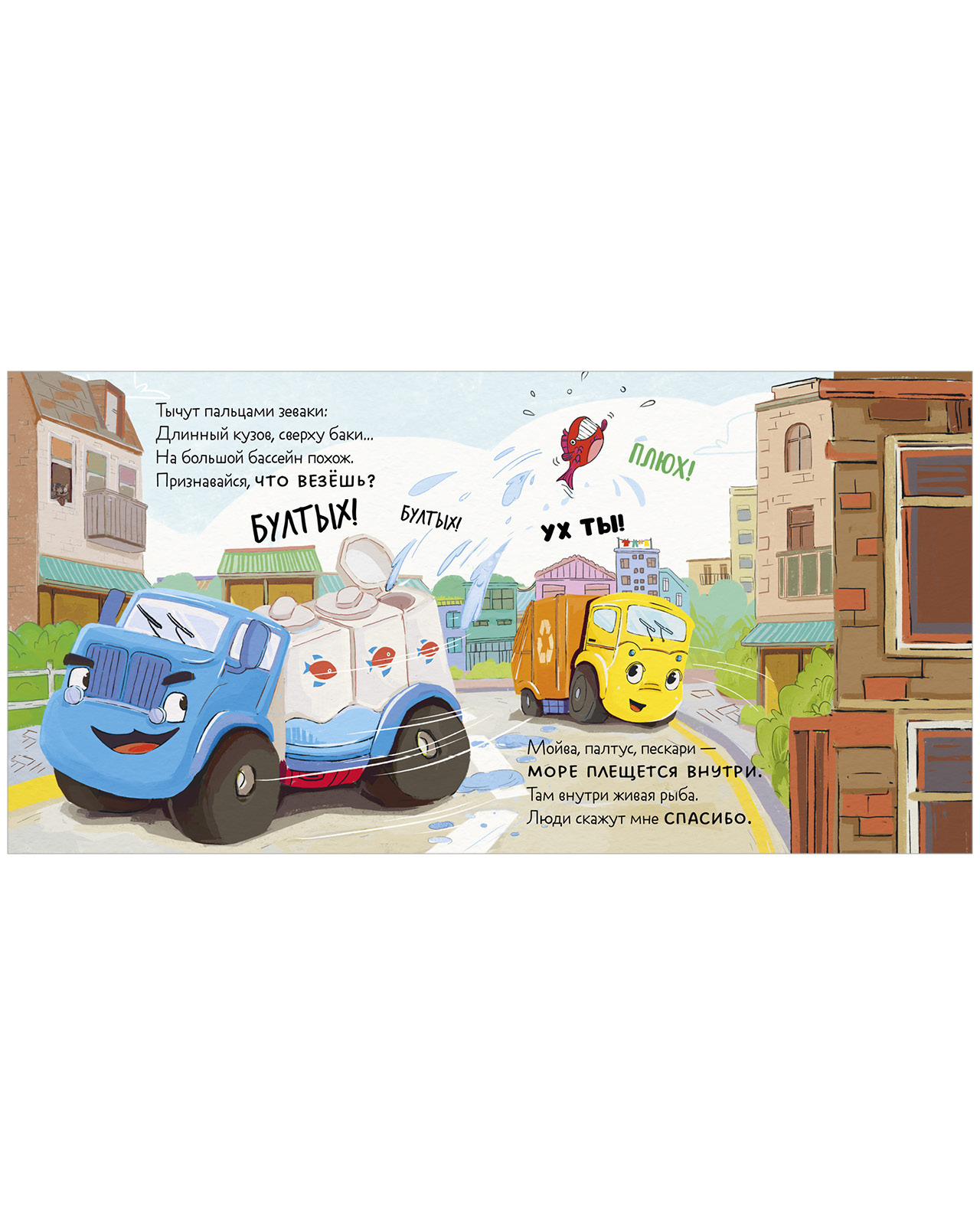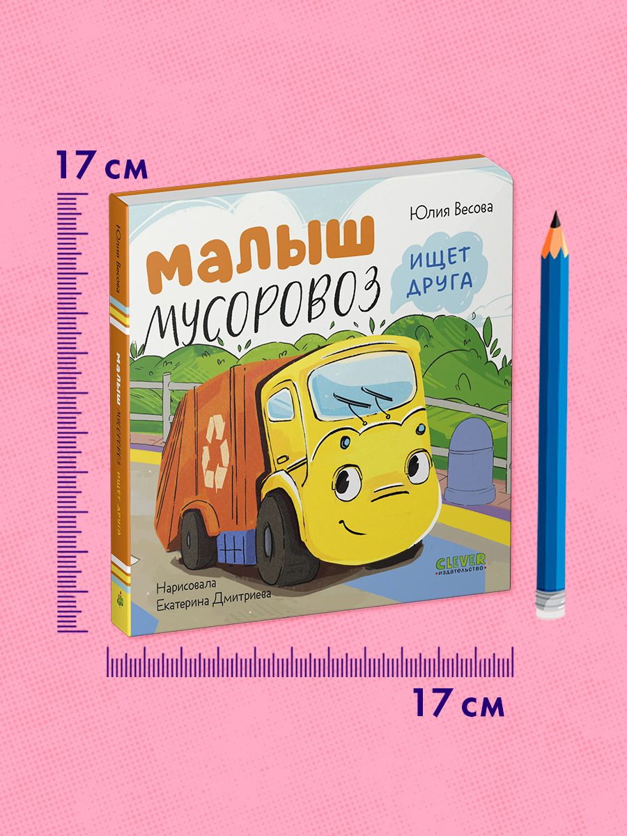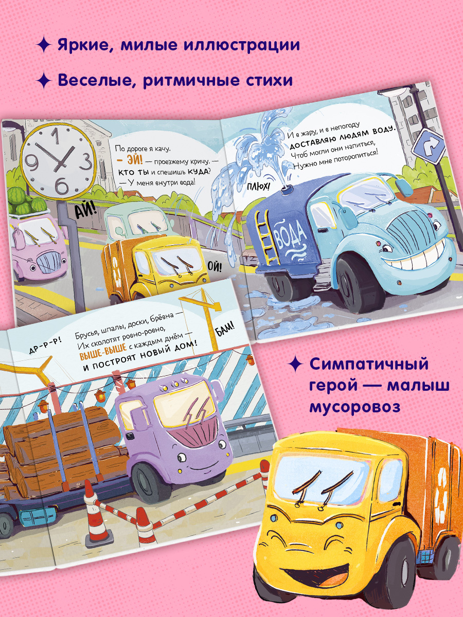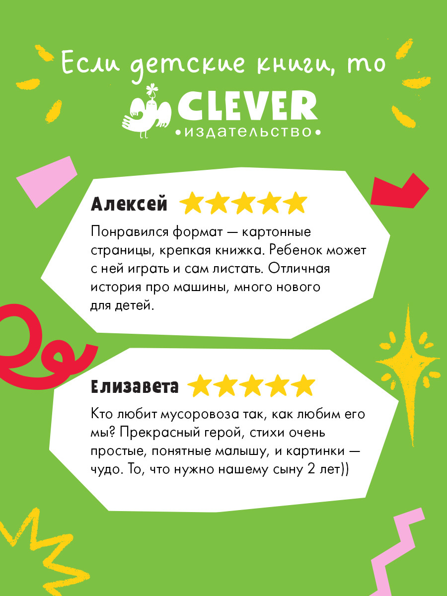 Веселые ритмичные стихи известной детской писательницы Юлии Весовой, яркие картинки книги для малышей, добрая история про милого героя Clever книги — приключения малыша мусоровоза понравятся детям, которые любят книги для детей в стихах и детские книги про транспорт.