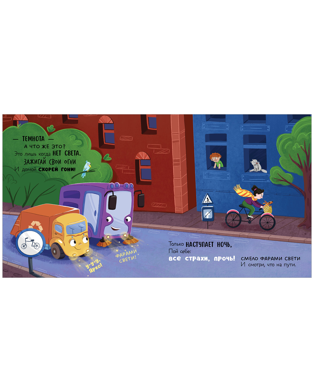 Маленький смелый мусоровоз подскажет девочке и мальчику, как победить страх. Например, можно выучить простой стишок: