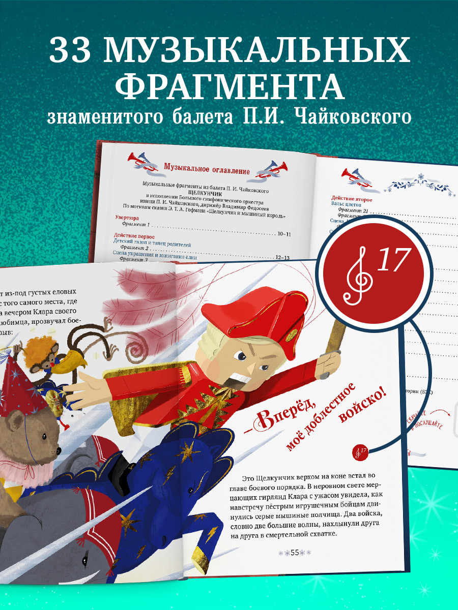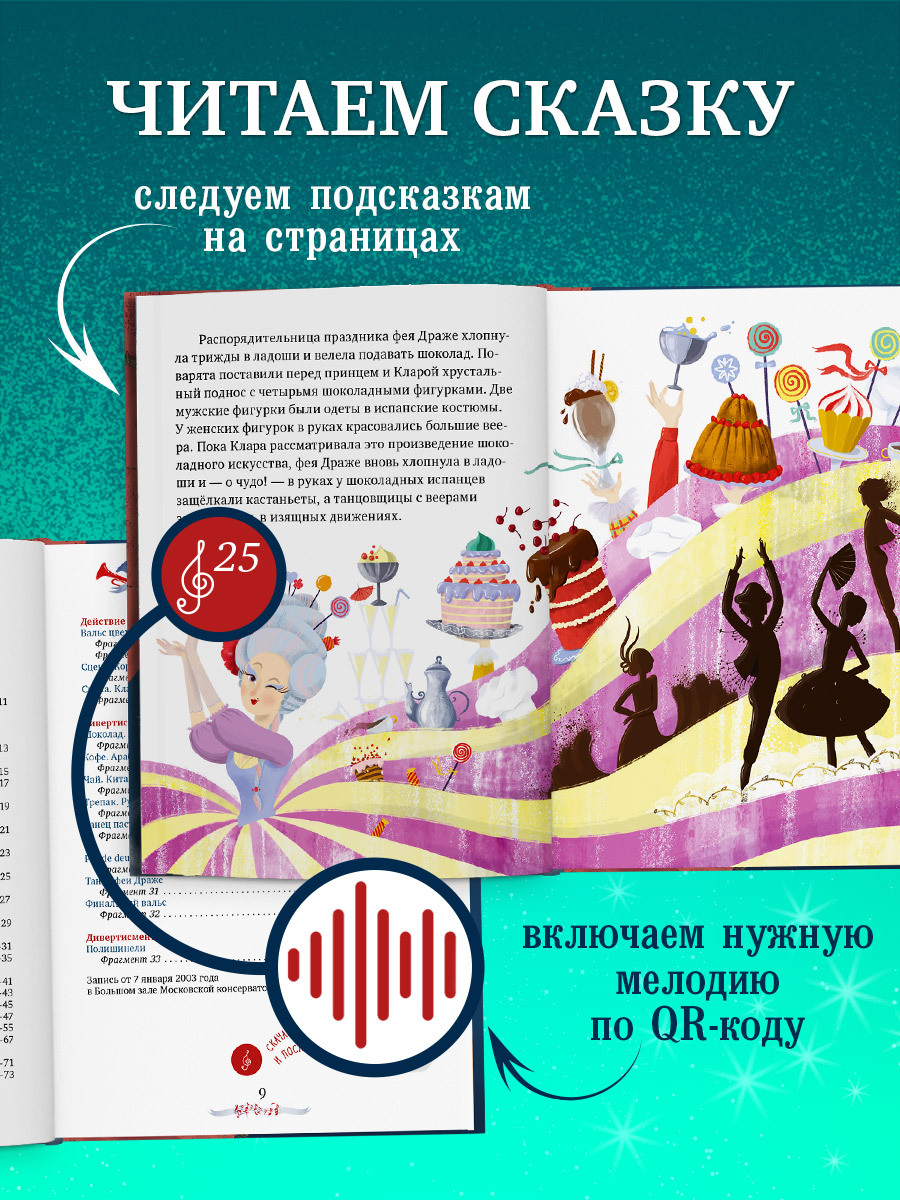 В книге «Музыкальный театр. Щелкунчик» вас ждут не только любимая новогодняя сказка с потрясающими иллюстрациями, но и фрагменты великого балета Петра Ильича Чайковского. Достаточно считать QR-код, и ваш смартфон напомнит вам чарующие звуки «Па-де-де» и «Вальса цветов».
