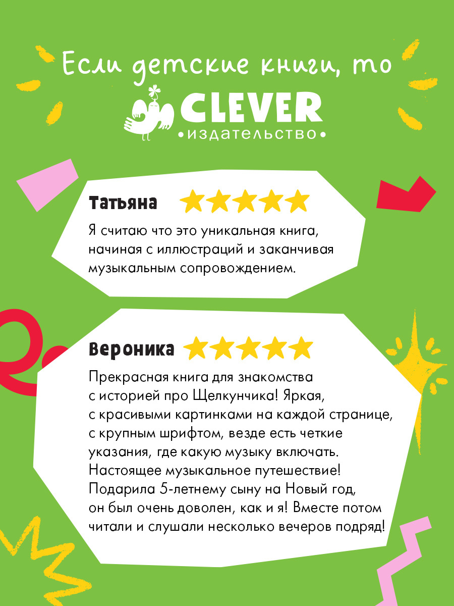 «Это не просто книга, а целый музыкальный спектакль. Читайте с ребенком захватывающую историю и слушайте знаменитые мелодии из балета “Щелкунчик” прямо со страниц!» — редактор Clever.