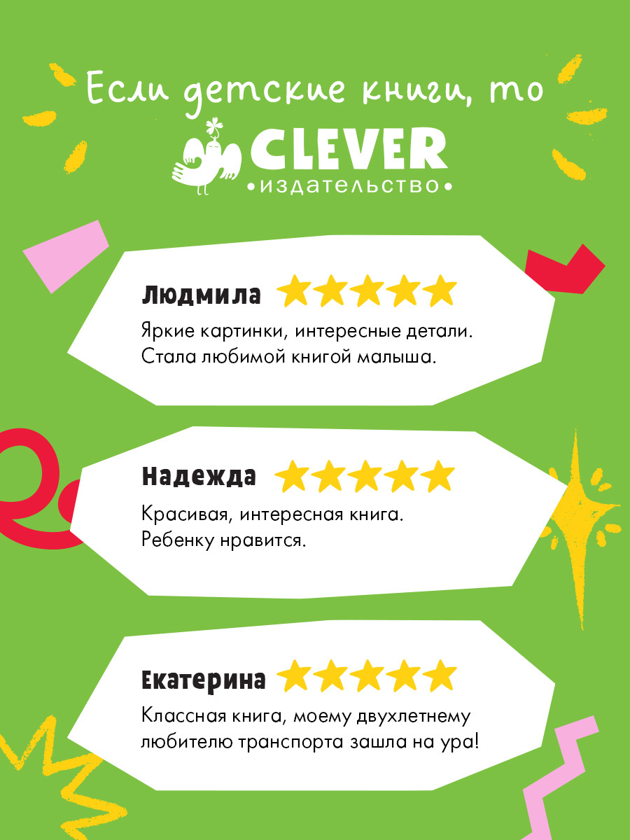 Варя и Петя любят путешествовать вместе с родителями и собакой Жужей! Отправляйтесь с ними в увлекательную поездку: прокатитесь на машине и трейлере, гидроцикле и снегоходе, поезде и трамвае, побывайте на автомобильных гонках! Следите за героями на страницах книги, играйте в «найди и покажи» и знакомьтесь с разными видами транспорта!