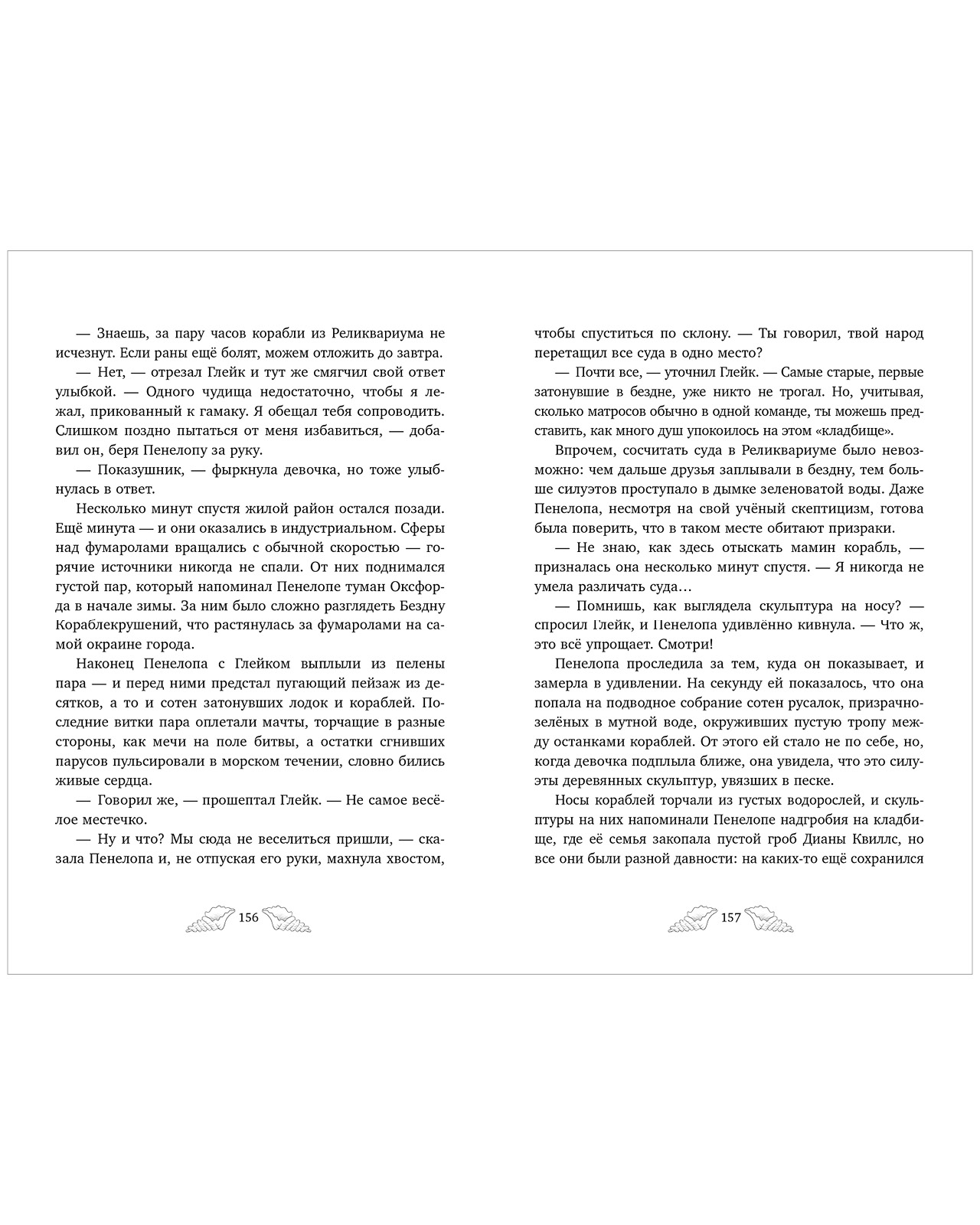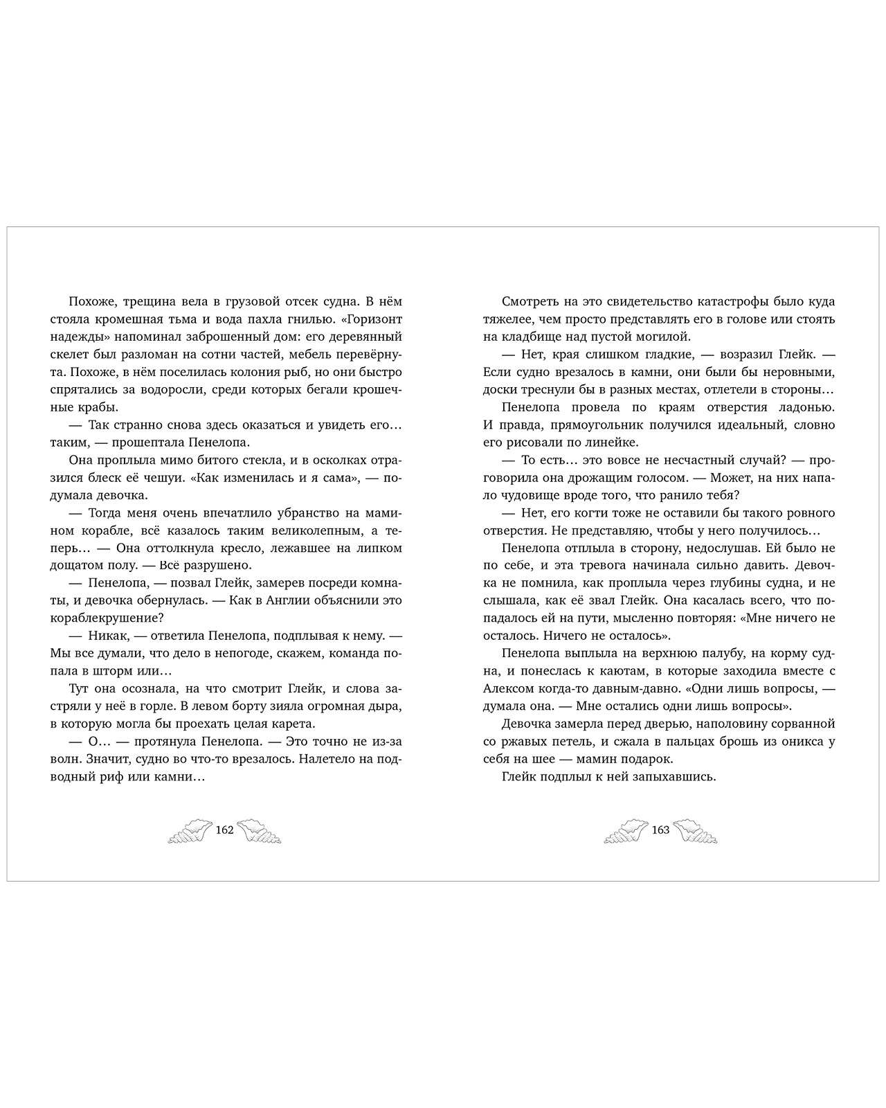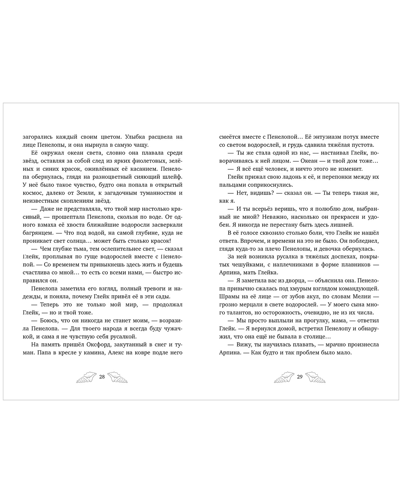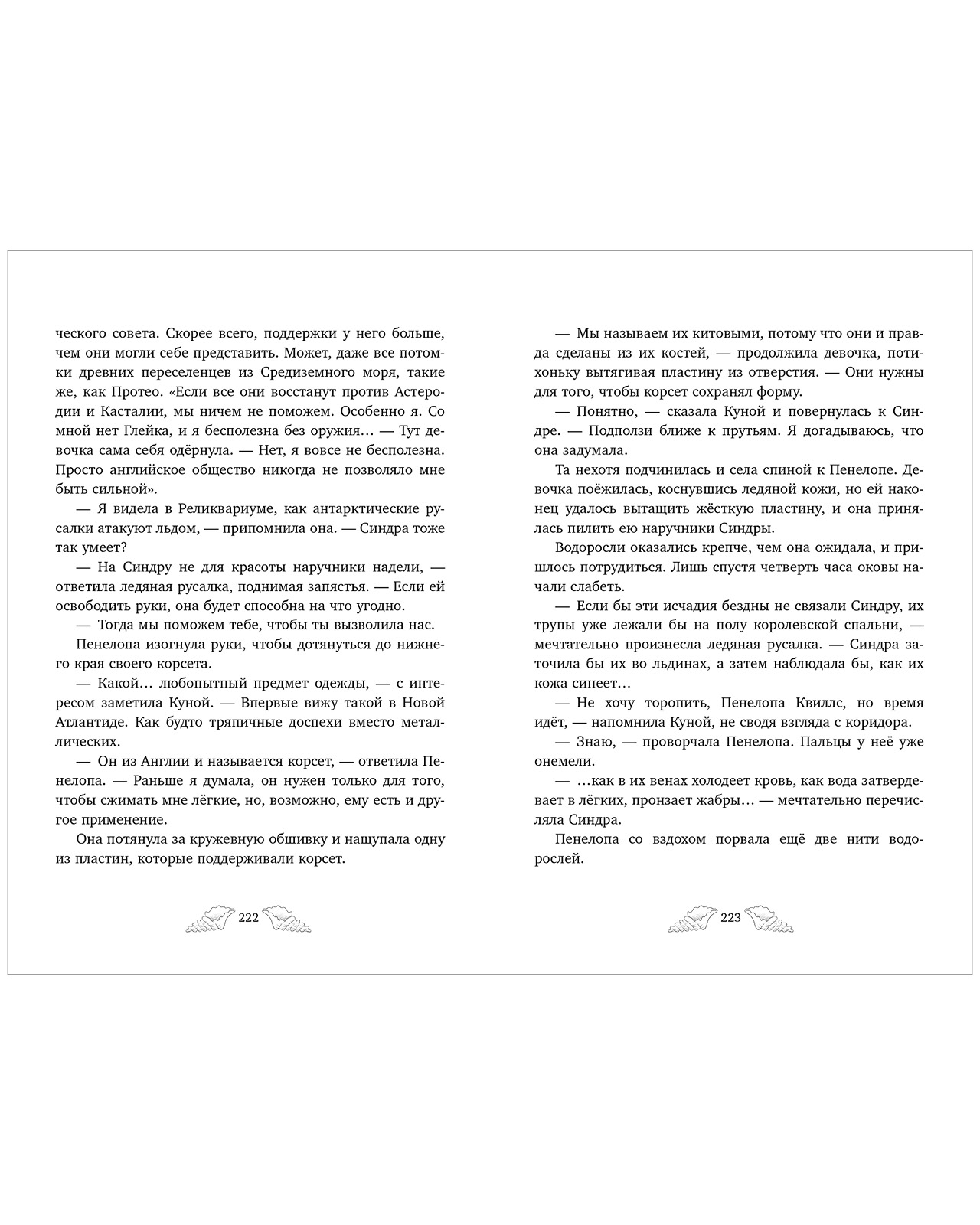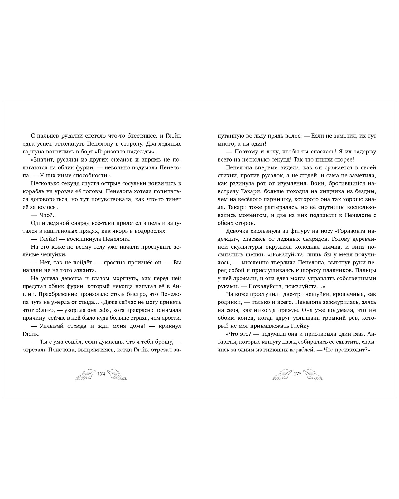 «Пенелопа Квиллс. Ледяное царство» — вторая книга о приключениях и магии в мире русалок с сюжетными черно-белыми иллюстрациями Джудит Маллол и атмосферным оформлением страниц.