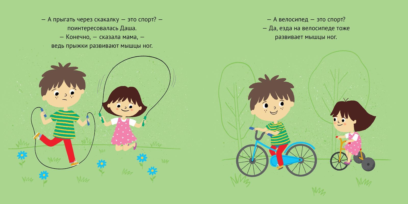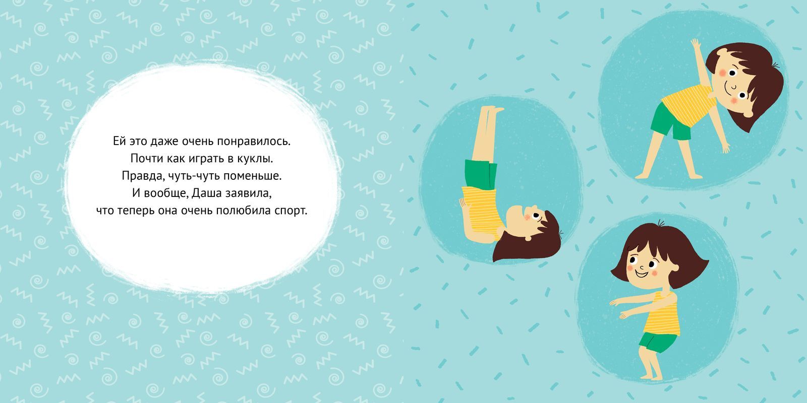 Как сделать упражнения такими же увлекательными, как игру в куклы? Почему велосипед — это спорт, а мультфильмы — нет? Зачем прыгать через скакалку и почему нужно обедать? На все эти вопросы ответят герои книги «Даша и Саша занимаются спортом».