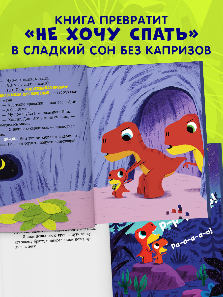 Чудесная красочная книга «Динозаврик Дин не хочет спать!» поможет создать уютный засыпательный ритуал для детей и объяснить малышам, как важен сон и почему ребенку лучше спать в своей кроватке.