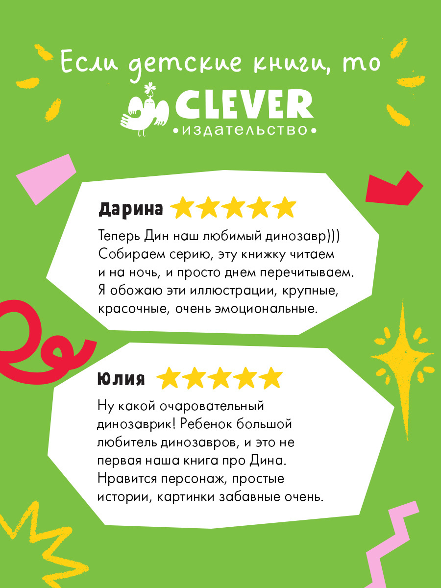 Книга «Динозаврик Дин не хочет спать!» понравится родителям, которые ищут развивающие книги на популярные детские темы для ребенка в годик, а также подарок девочке или мальчику на праздник, мамам и папам, которых интересует детская художественная литература, развивашки, книжная продукция, которую выпускает издательство Clever.