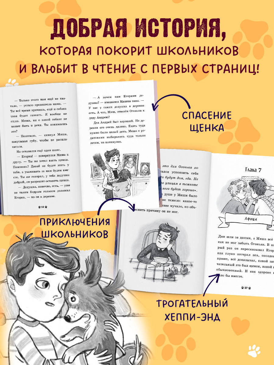 Трогательная и светлая история о дружбе «Щенок Огонек, дай лапу!» научит мальчиков и девочек любить животных и заботиться о них. Интересные книги серии «Пушистые истории» — идеальные книги для детей 7 лет. Книга детская про щенка Огонька понравится родителям, которые ценят Clever издательство и ищут книги для школьников, для самостоятельного чтения.