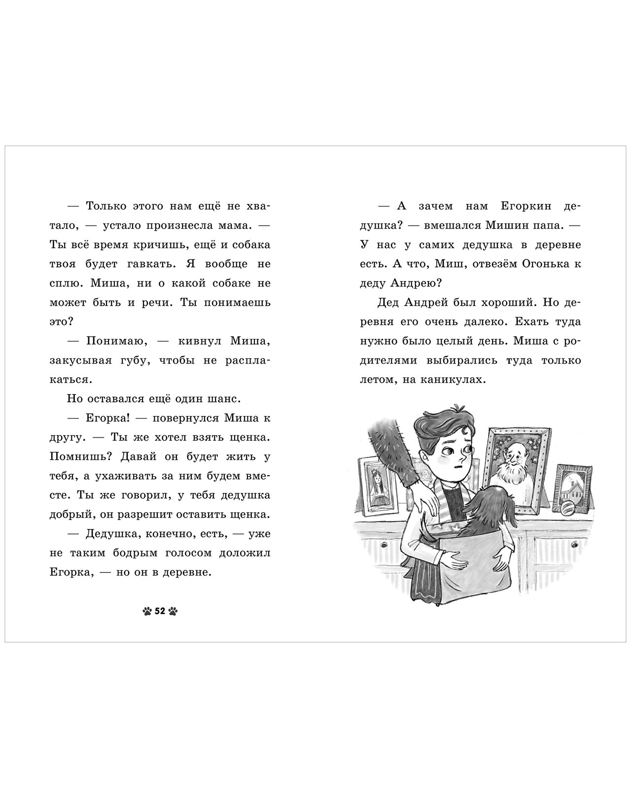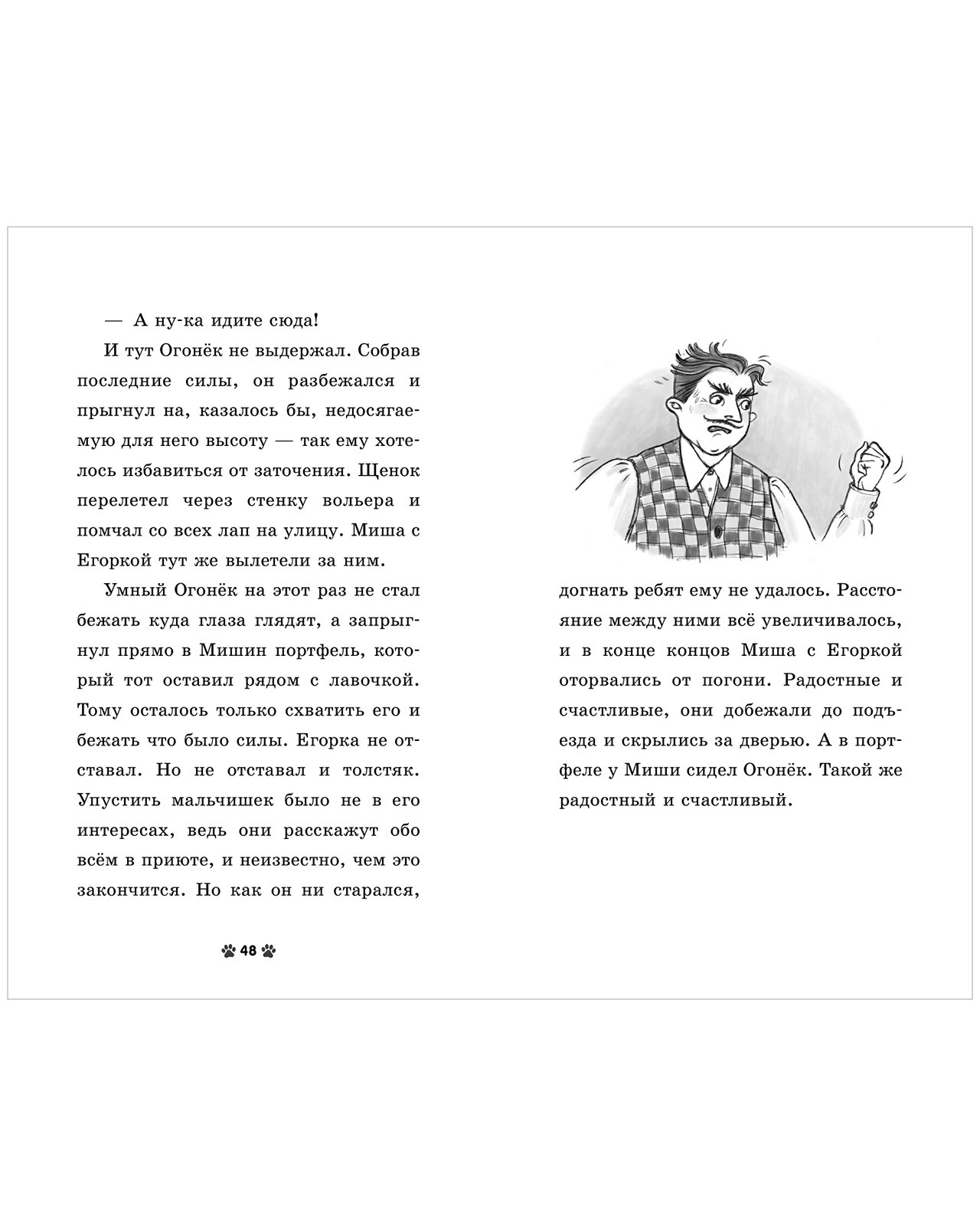 Крупный шрифт, сюжетные черно-белые иллюстрации