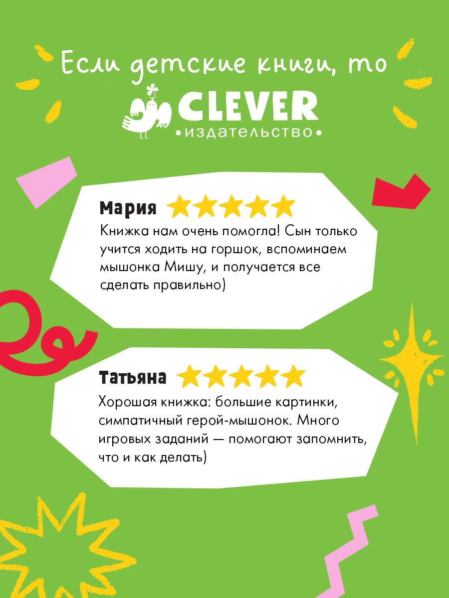 Вместе с мышонком Мишей малыш узнает, для чего нужен горшок, как им пользоваться и почему горшок — друг всех малышей. Благодаря интерактивным заданиям на каждой странице ребенок легко запомнит нужный порядок действий.