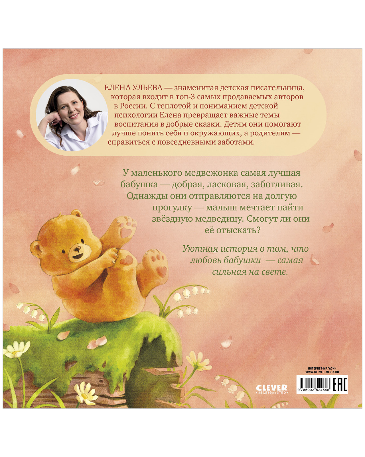 У маленького медвежонка самая лучшая бабушка — добрая, ласковая, заботливая. Однажды они отправляются на долгую прогулку — малыш мечтает найти звездную медведицу. Смогут ли они ее отыскать?