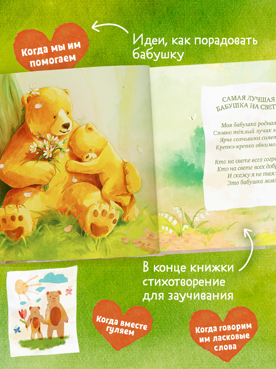 Книжка для малышей «Самая лучшая бабушка на свете» — отличный подарок ребенку 2 лет, а также она понравится тем, кто ищет сказки для детей 3 лет и книги для детей 4 лет.