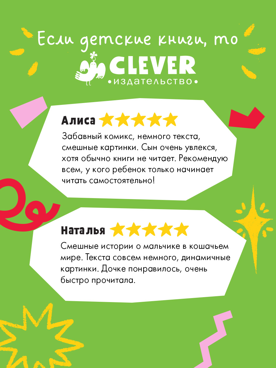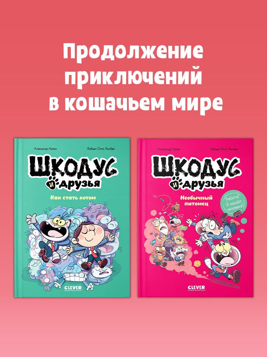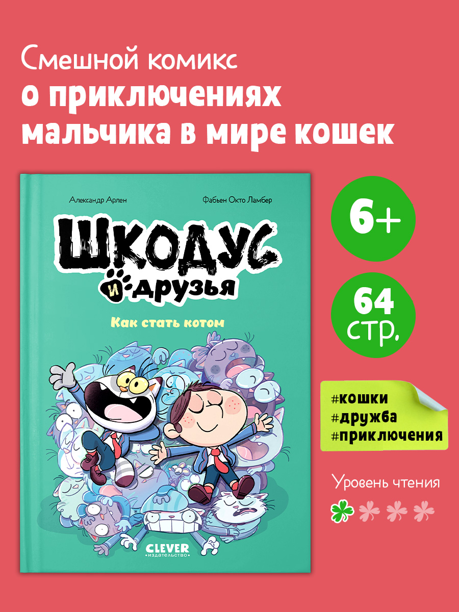 Если вы ищете увлекательные книги для детей, Clever книги с яркими иллюстрациями, книги детские в формате комикса, интересные книги с обаятельными персонажами и детские книги с героями кошками, комикс «Шкодус и друзья. Как стать котом» для вас.