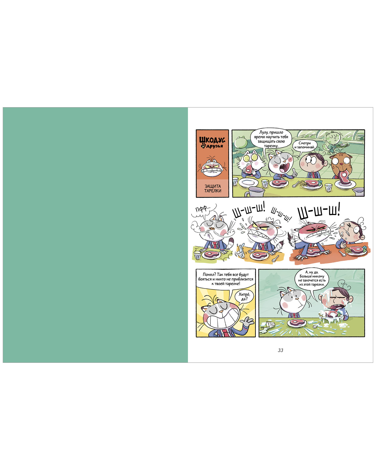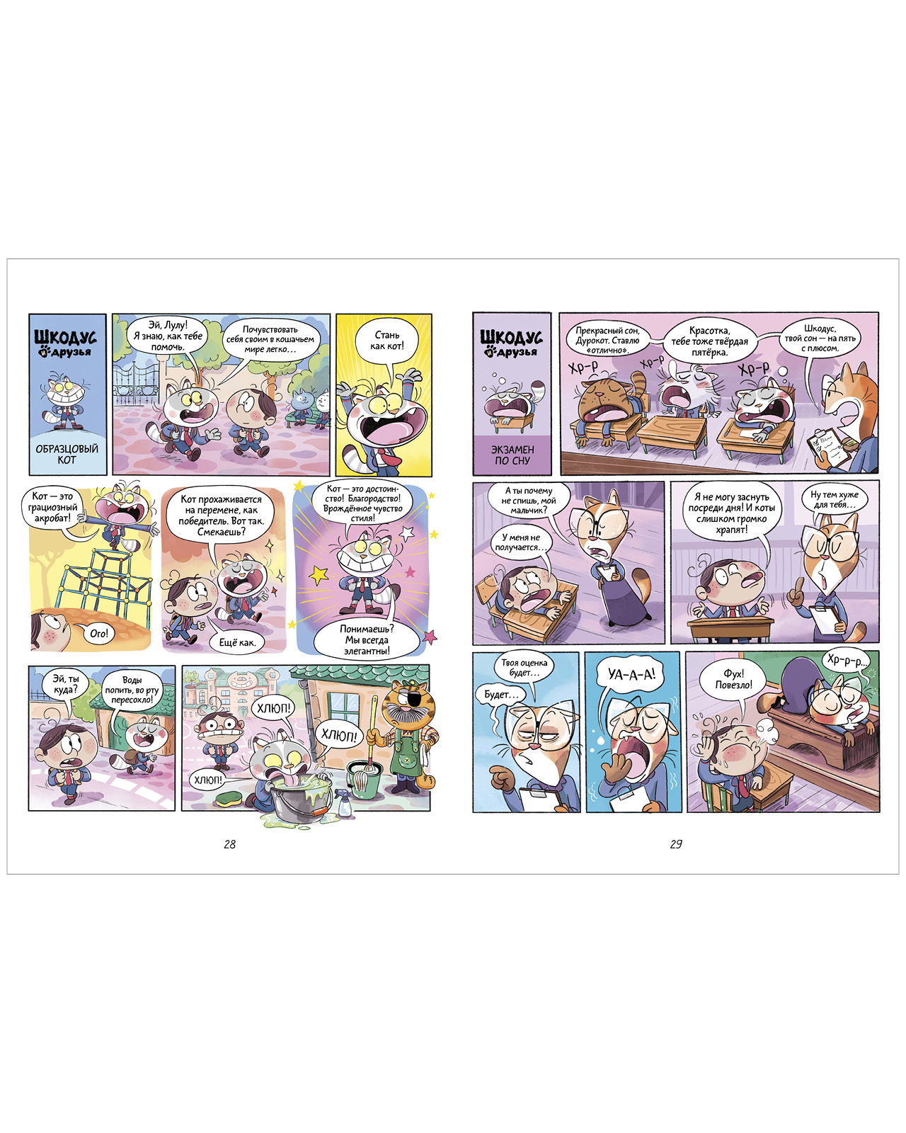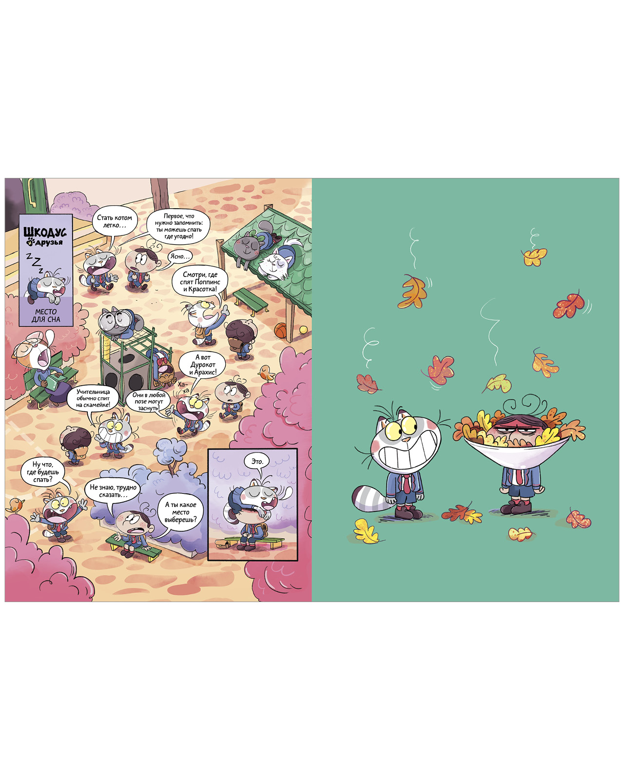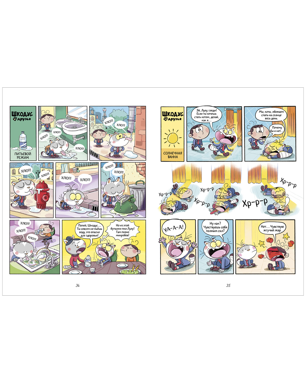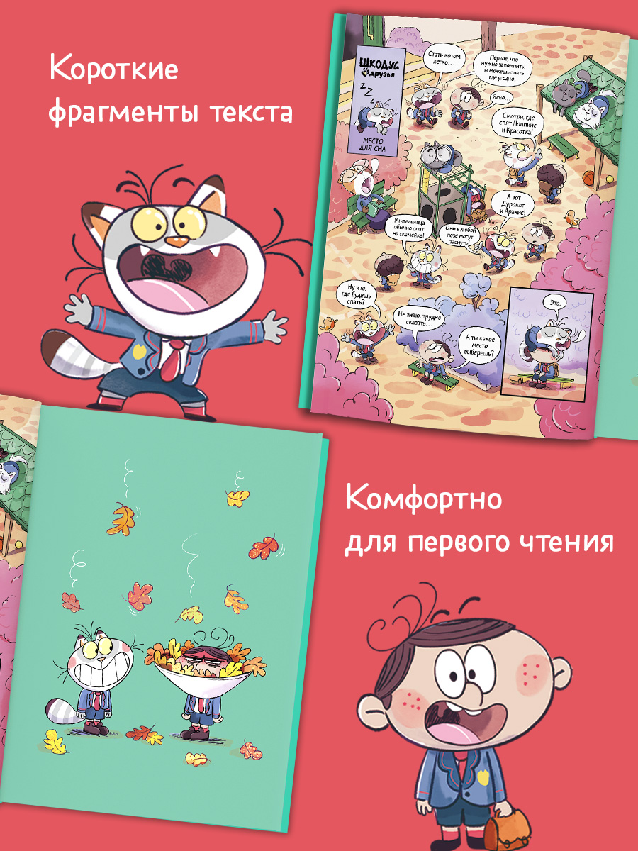 «Шкодус и друзья. Как стать котом» — веселый комикс о кошачьей жизни и парочке совсем непохожих, но верных и заботливых друзей. Динамичные «мультяшные» иллюстрации, небольшие фрагменты текста и забавные диалоги — идеально для первого самостоятельного чтения.