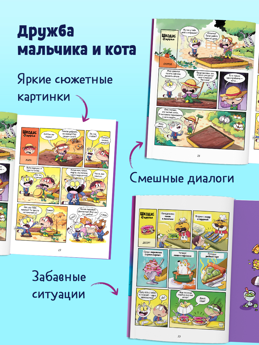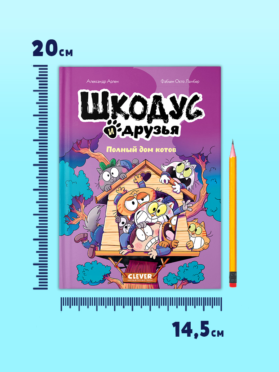 Если вы ищете книги для детей с яркими картинками, детские книги про кошек, интересные книги для дошкольников, детские сказки французских авторов и Clever книги в формате комикса, книга для детей «Шкодус и друзья. Полный дом котов» для вас.