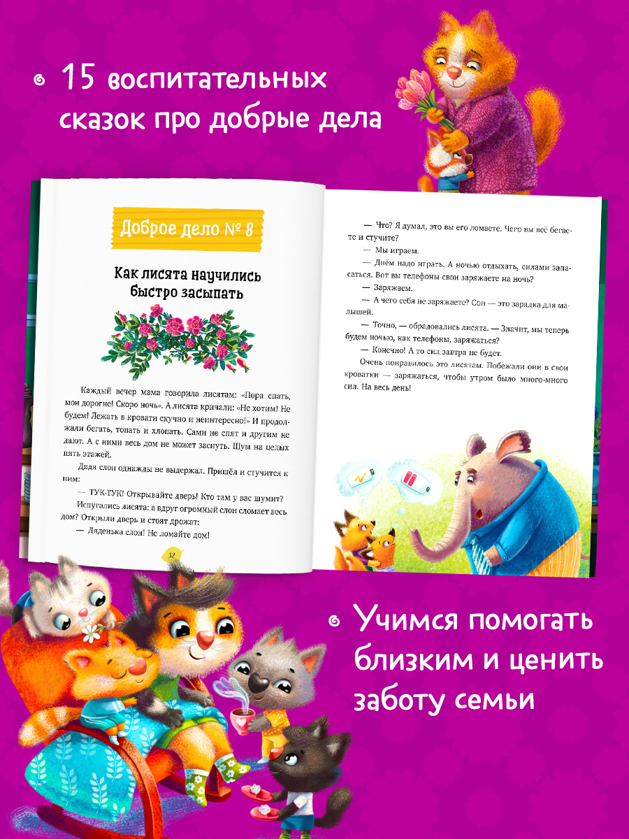 «Добрые дела. Сказки для чтения перед сном» — 15 добрых историй, которые научат ребенка заботиться об окружающих и ценить свою семью.